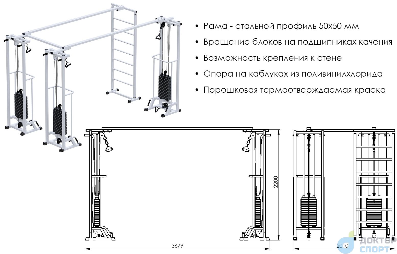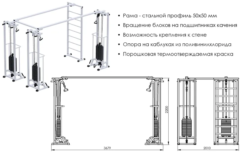 Высота 2200 мм Высота 2400 мм Данный тренажер является аналогом тренажера Бубновского МТБ-1. По сути, тренажер Бубновского - это тот же кроссовер или реабилитационная рама, - то есть функциональных отличий нет, однако тренажер Бубновского запатентован и поэтому только он имеет право так называться.