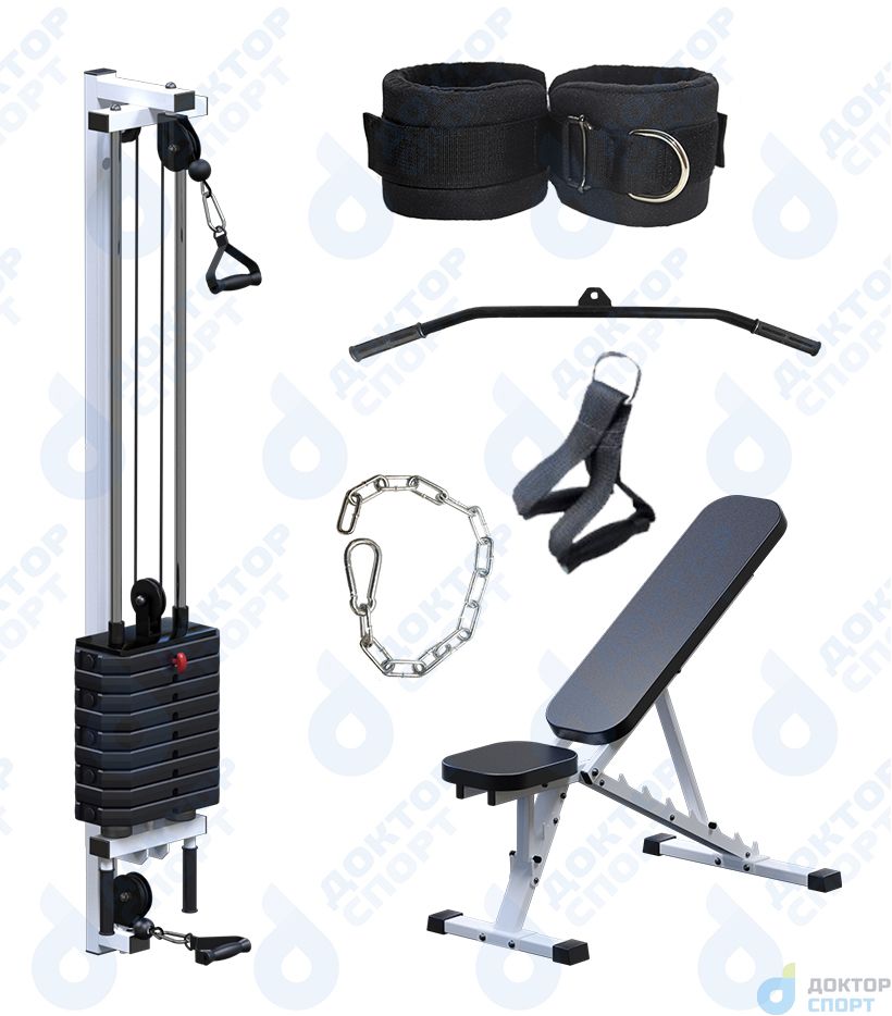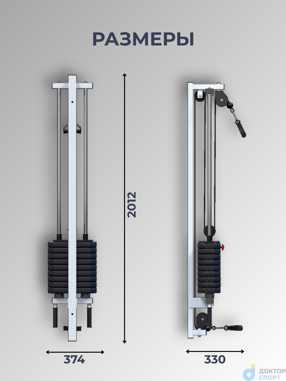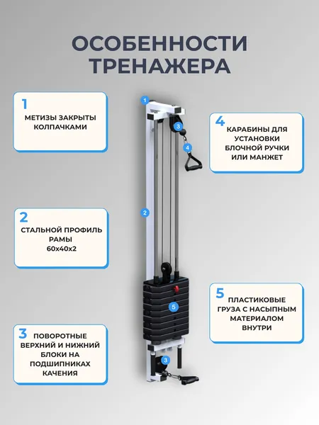 Вид тренажераодиночная рамаКатегориядомашнийТип рамыразборнаяВес грузоблока50 кгКреплениек стенеМатериал грузовпластикМатериал тросаполиамидный фалСкамья в комплектеестьПроизводствоРоссияЦветбелый (другой под заказ)Ширина37 смГлубина33 смВысота201 смОбщий вес85 кгОбъем в упаковке0.5 куб.м. -