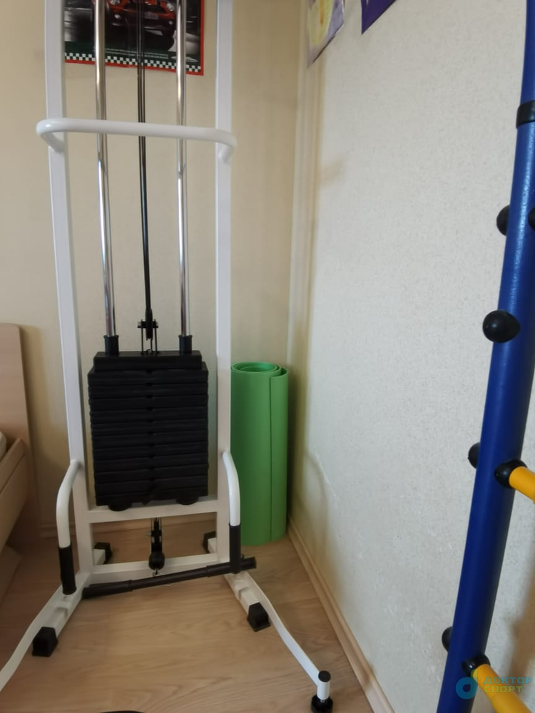 4. Эксплуатация.Занимает мало места. Грузы прорезинены, поэтому нет звонкого удара металл об металл(тихий,глухой звук). Самое важное для меня нет необходимости крепить к стене за счет выдвижных упоров, стоит надёжно. Что дает возможность перемещать в пространстве без лишних заморочек и отверстий в стене.