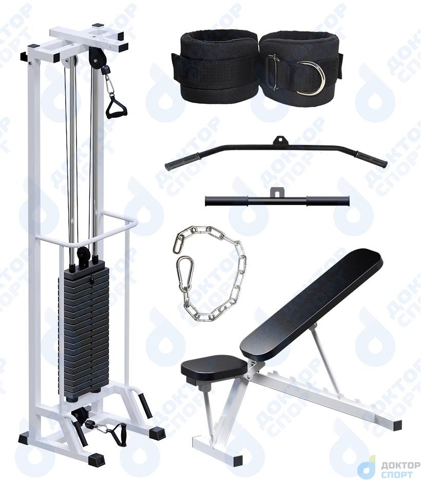 Многофункциональный тренажер «Биотонус» представляет собой вертикальную раму, имеющую систему блоков, через которую с помощью троса осуществляется тяга грузов в свободном направлении.