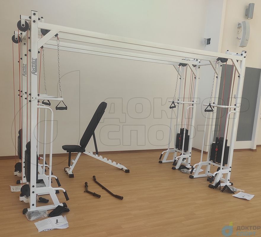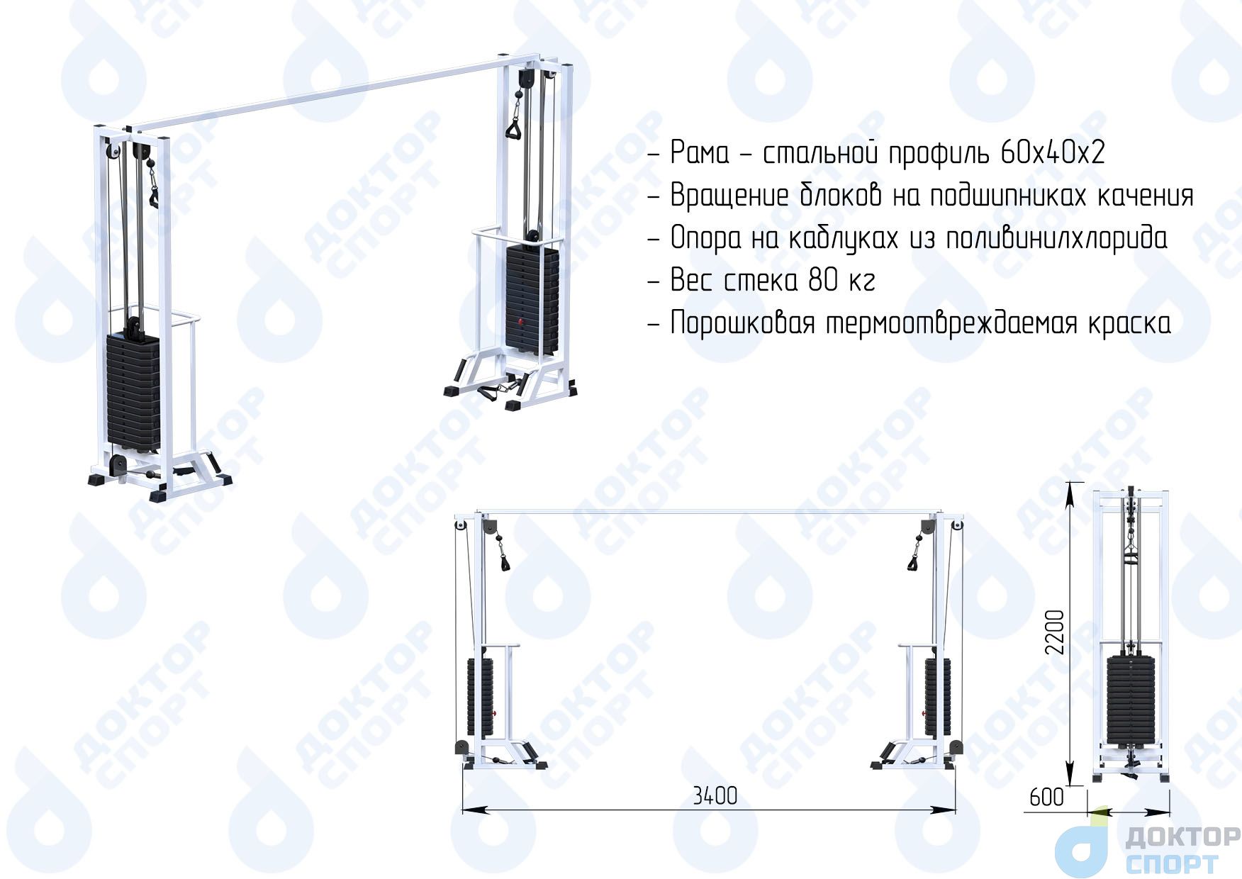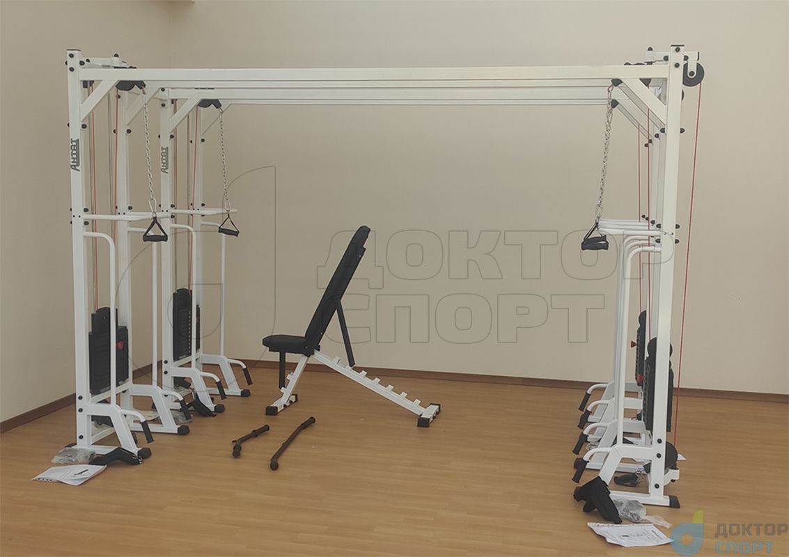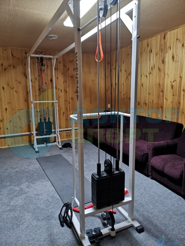 Тренажер "Тонус-2" 60/80/100 кг кроссовер представляет собой вертикальную раму, имеющую систему блоков, через которую с помощью троса осуществляется тяга грузов в свободном направлении.