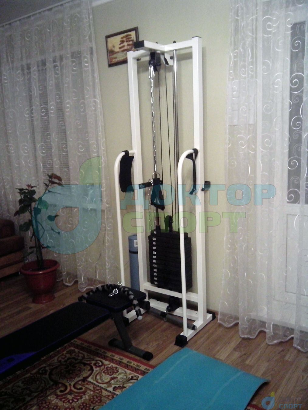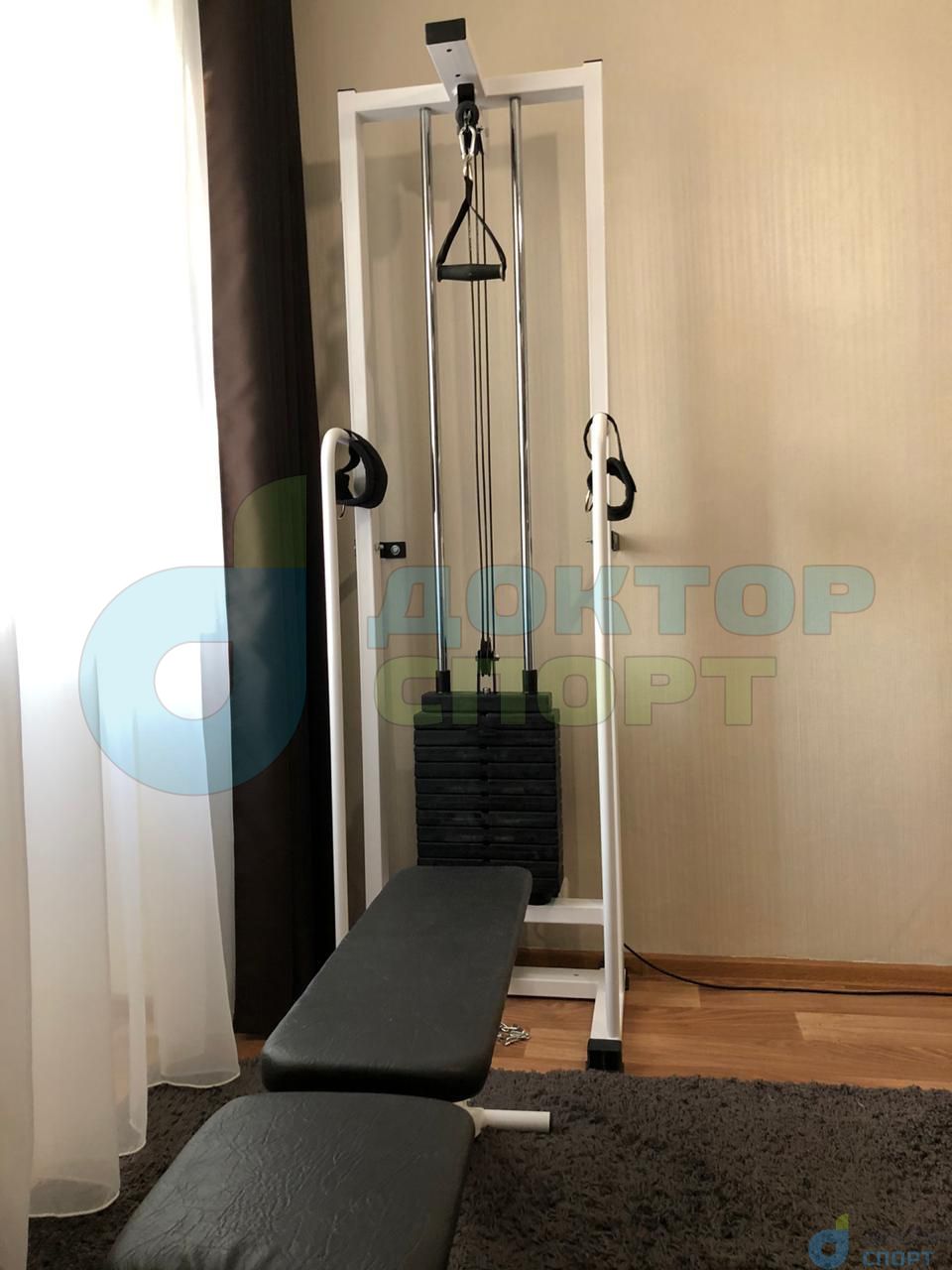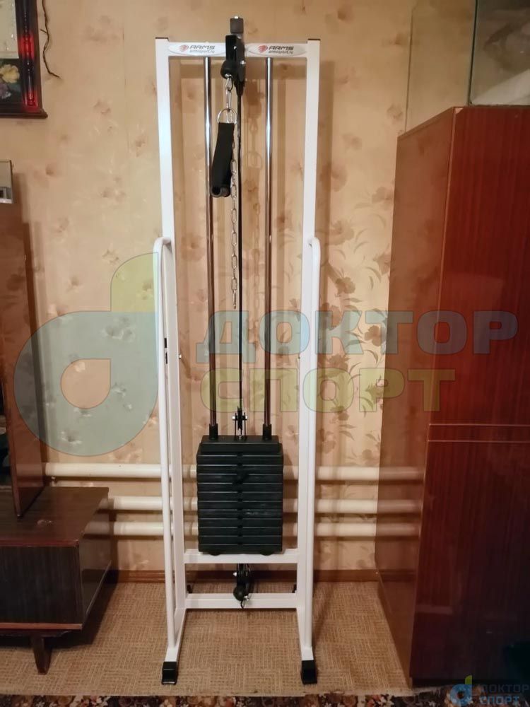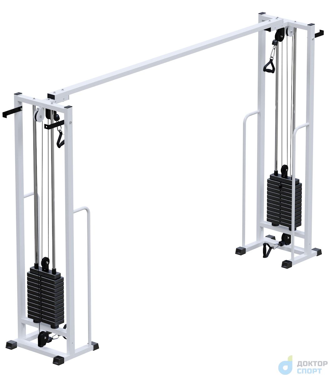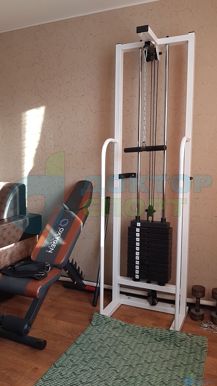 Многофункциональный тренажер «Олимп-2» 60 кг кроссовер представляет собой вертикальную раму, имеющую систему блоков, через которую с помощью троса осуществляется тяга грузов в свободном направлении.
