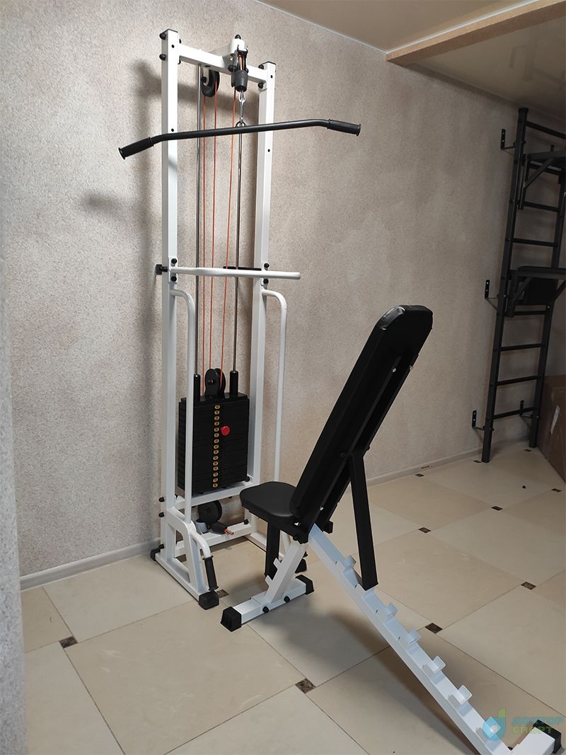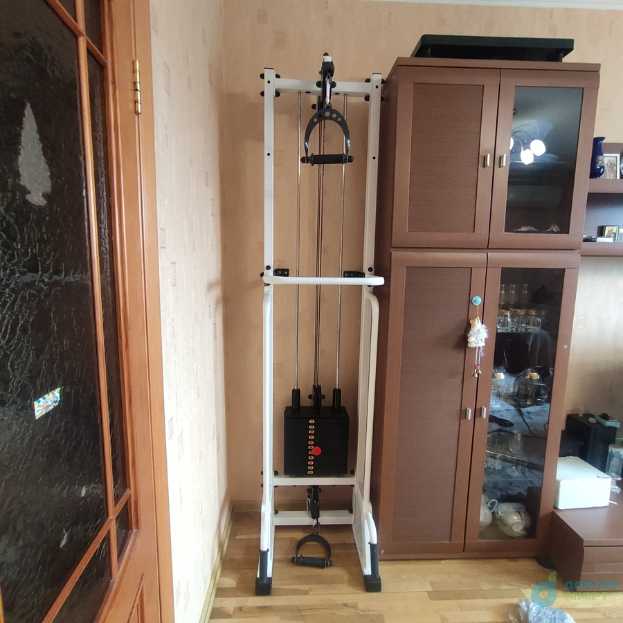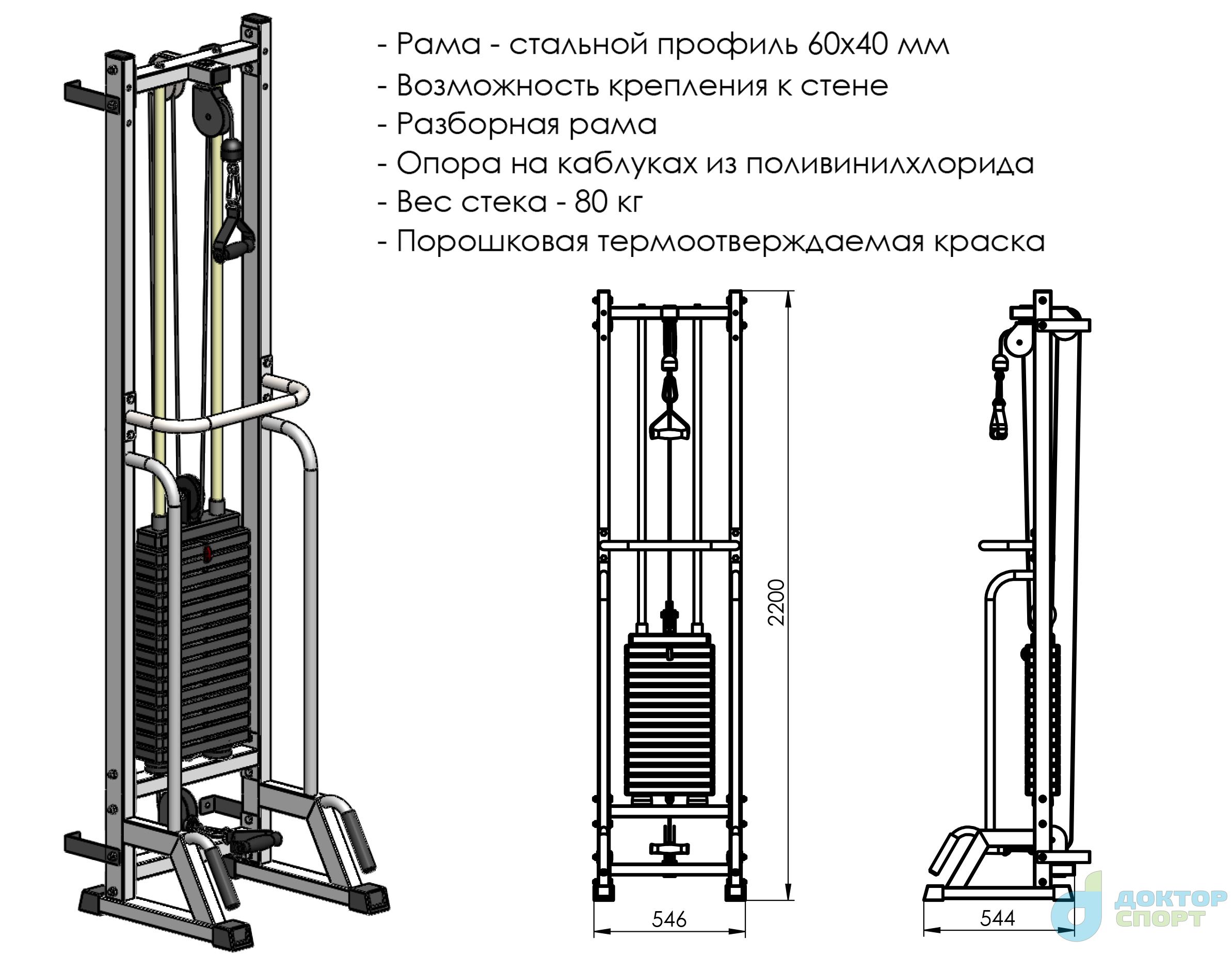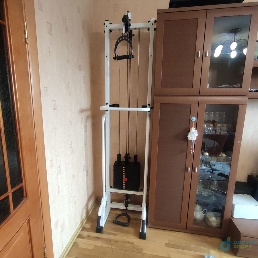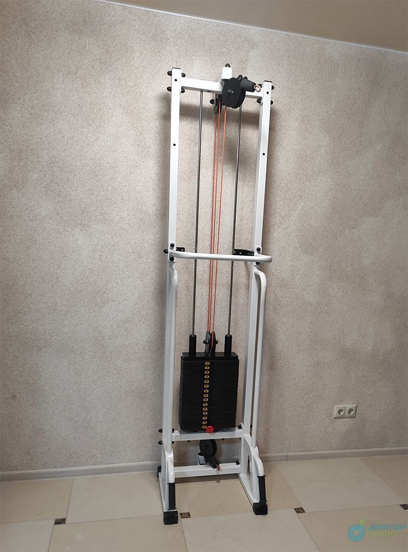 Многофункциональный тренажер «Тонус» домашний представляет собой вертикальную раму, имеющую систему блоков, через которую с помощью троса осуществляется тяга грузов в свободном направлении.