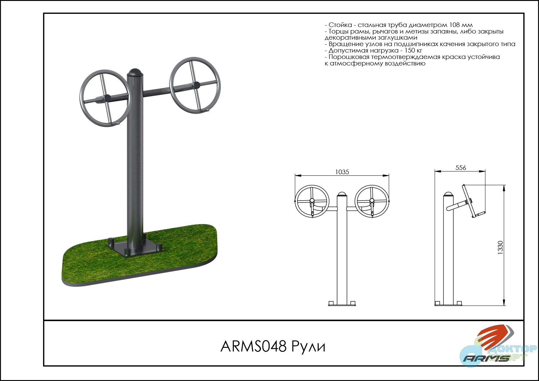 Предназначение: Тренажер предназначен для одного пользователя. Стоя ровно и держась за рычаги на рулях, выполняйте упражнения вращения. Вращения выполняются одной рукой либо двумя одновременно. Развиваются мышцы рук -