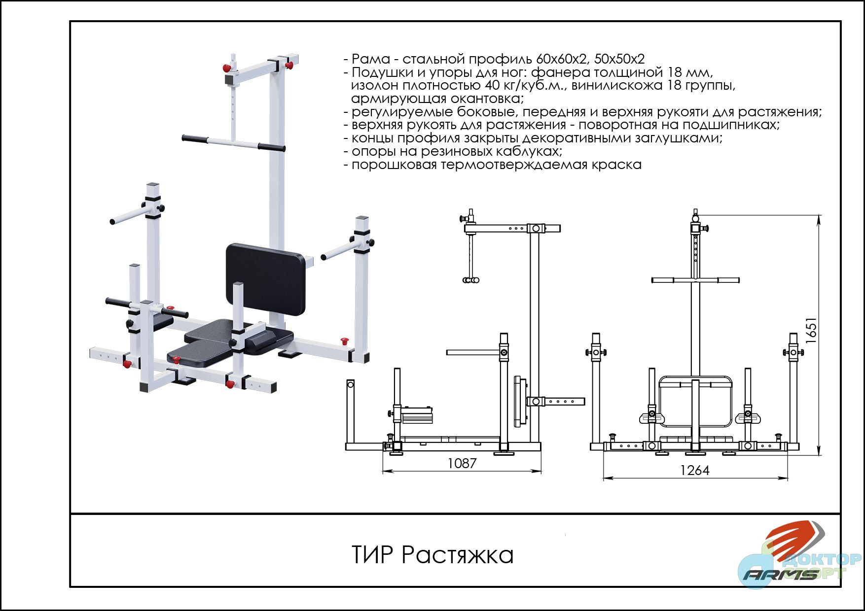 Описание: Тренажер предназначен для растяжки, разработки суставов ног и позвоночника. При этом происходит фиксация ног в позе «лотоса». Так же можно разрабатывать ноги – раздвигая и сдвигая их, а также наклонять их вместе в разные стороны – по очереди. При этом не нужно держать двум инструкторам – одному стопы, а другому давить и плечи и поворачивать туловище то в одну сторону, то в другую. А также раскрутки и разработки позвоночника в разные стороны за держатели для рук. Разные режимы (различные расположение рук и обхваты), позволяют подключить большее количество мышц, а также усложнять нагрузку. Тренажер имеет 2 режима работы: Режим работы №1. Зафиксировав ступни и колени, тянемся в разные стороны; вперед, налево и направо. Режим работы №2. Держа руки над головой повороты влево, вправо с регулировкой высоты. -