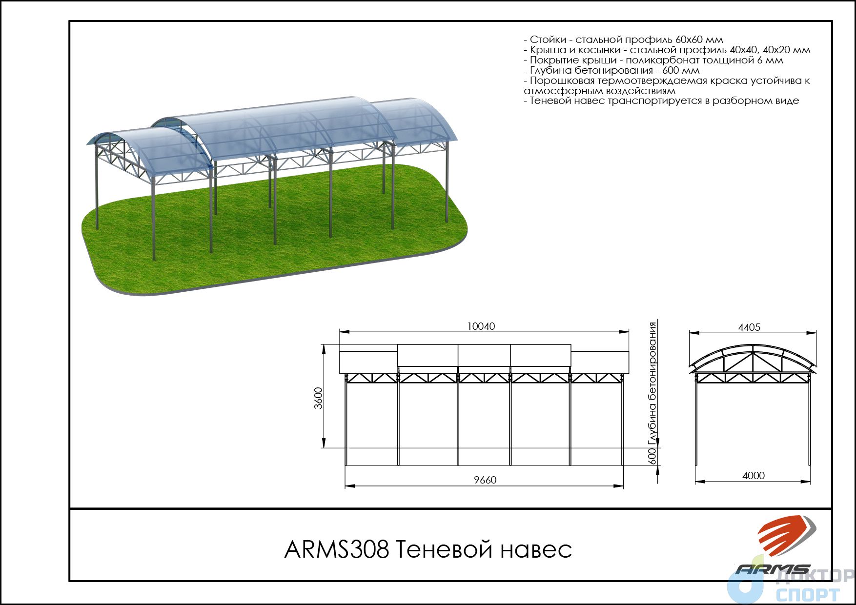 Предназначение: Теневой навес предназначен для уличных тренажеров. -