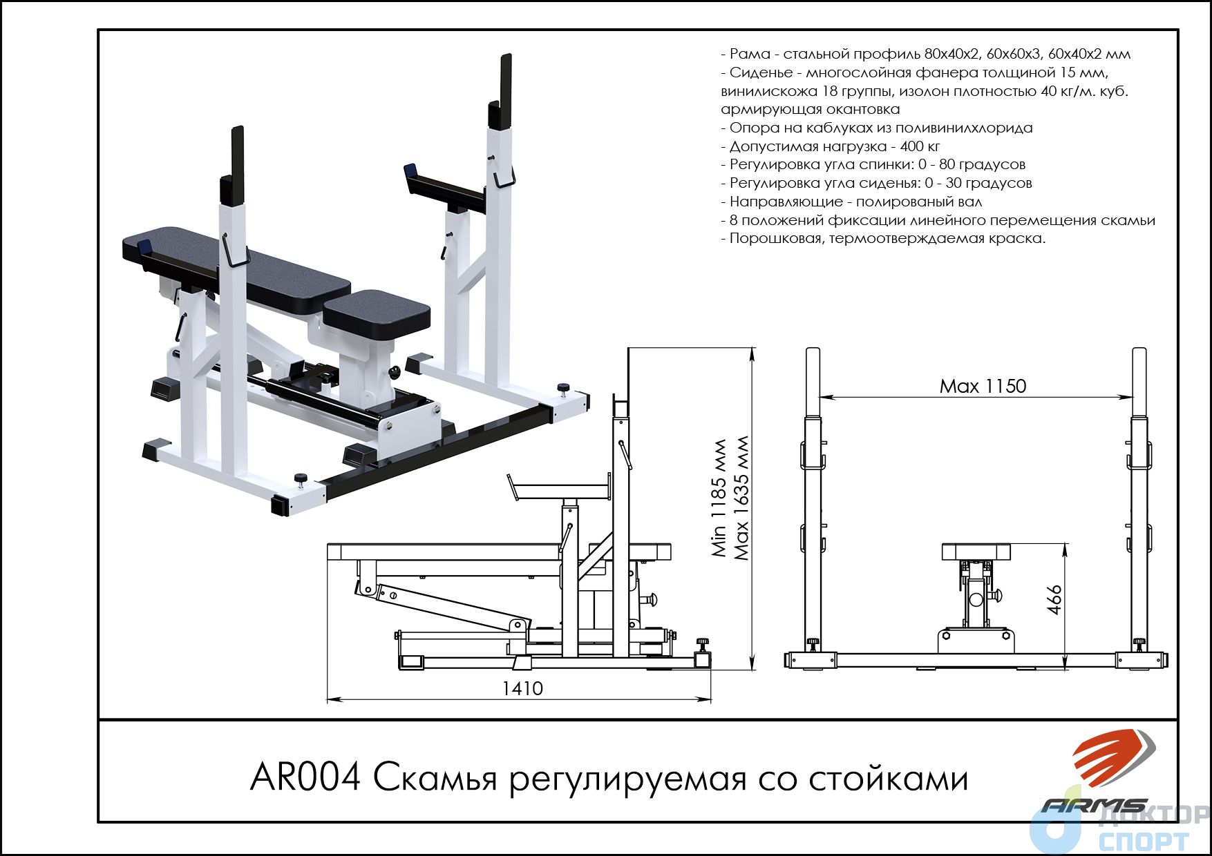 Скамья регулируемая со стойками