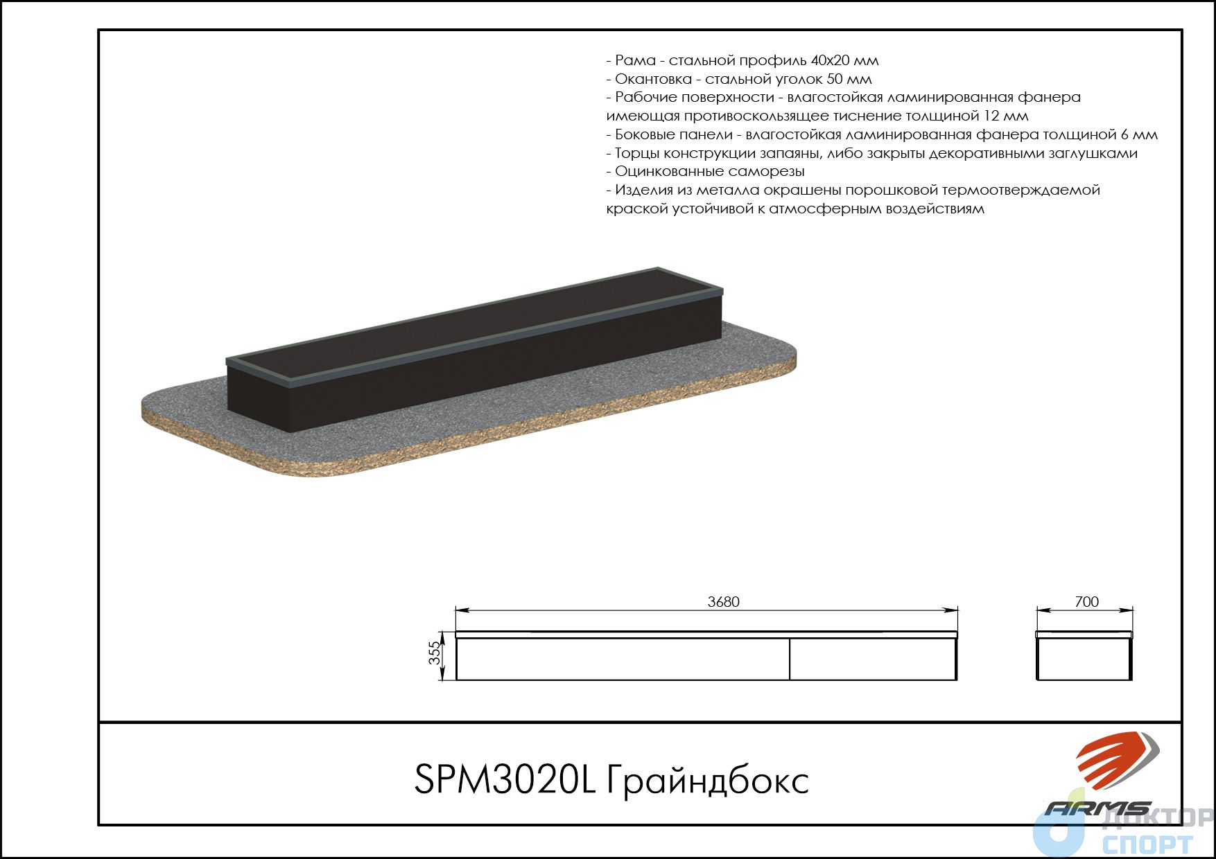 Предназначение: Грайндбокс можно использовать как самостоятельный элемент на площадке, так и как дополнительная приставка к другим элементам. На нем отрабатываются всевозможные трюки. -