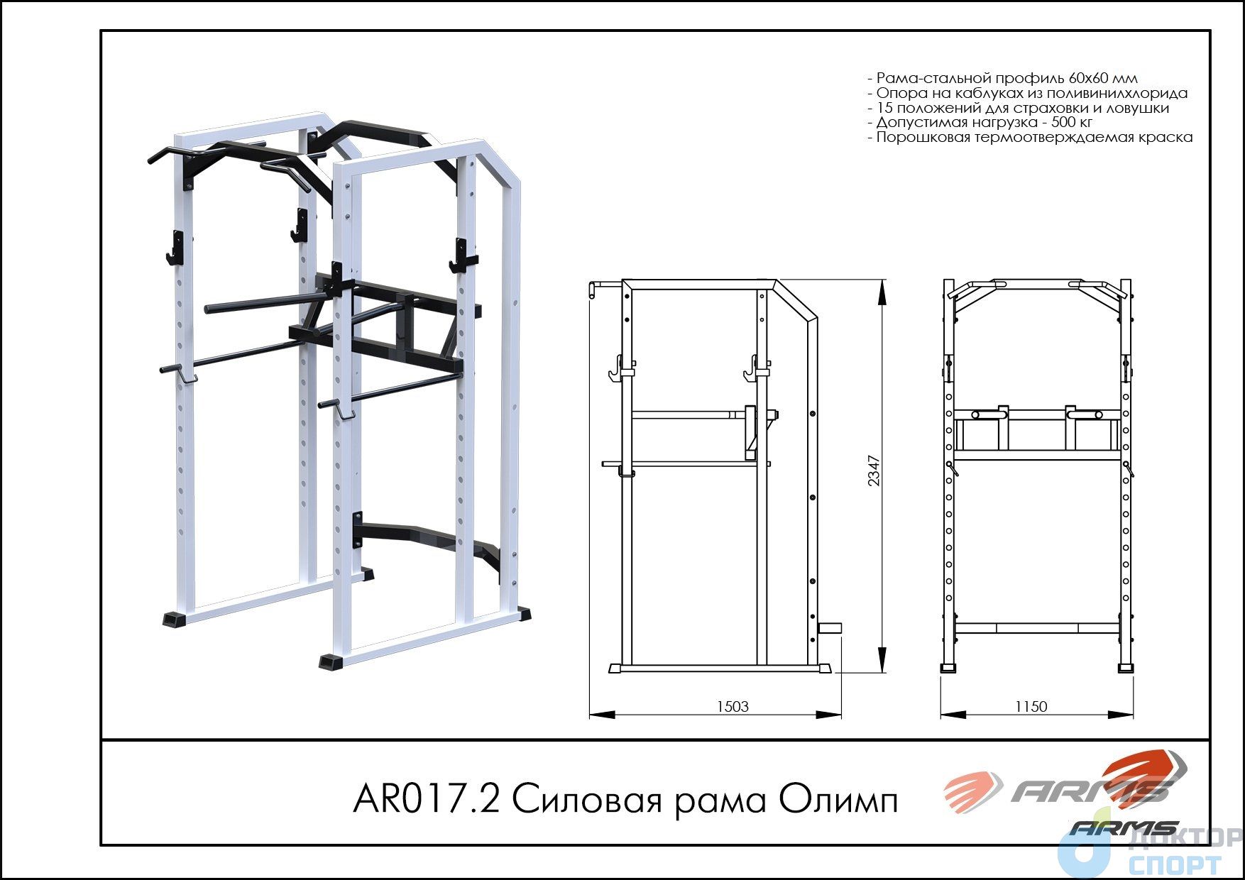 Предназначение: Благодаря страховкам силовая рама прекрасно подходит для безопасных приседаний и жимов как со скамьей, так и самостоятельно. -