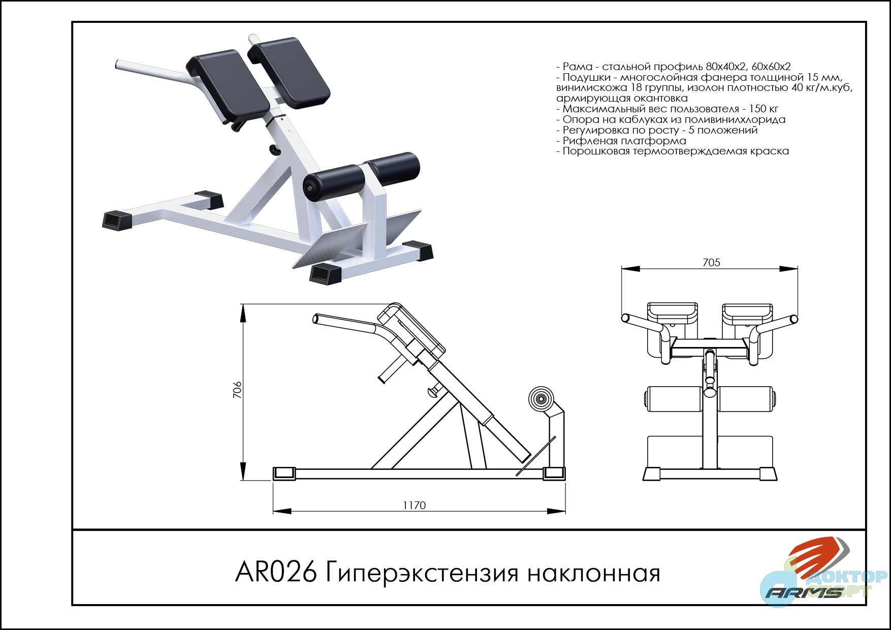 Предназначение: Тренировка мышц спины и пресса, ягодичные мышцы, бицепс бедра.