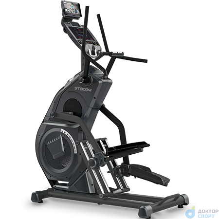 Степперы являются одними из самых безопасных видов кардио оборудования. ST800M не является исключением. Тренажер создан для занятий с низкой ударной нагрузкой на суставы и позвоночник. За счет своей конструкции и отлаженных биомеханических свойств достигается более мягкое воздействие на проблемные участки. Колени не перегружаются и акцент сосредотачивается на самих мышцах. Степпер оснащен аэромагнитной системой нагружения, позволяющей сделать ход более плавным и разнообразить интенсивность тренировок. Для удобства, на оборудовании установлены педали увеличенного размера, которые покрыты антискользящим материалом. Высота шага для ST800M составляет 300 мм. Пользователи могут воспользоваться преимуществами рукояток, на которых расположены сенсорные датчики пульса. Горизонтальные и вертикальные поручни позволяют держать руки в разных положениях и обеспечивают устойчивость пользователя при выполнении упражнений, а также при подходах к спортивному снаряду.