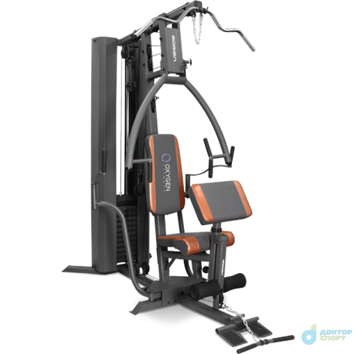 ?Многофункциональный силовой комплекс Oxygen Adrian с утяжеленным стеком обеспечивает максимум функционала и подходит атлетам практически любого уровня подготовки. В число станций входят верхняя и нижняя и тяги, гребная тяга/жим от груди/жим от плеч, баттерфляй, пресс/спина, бицепс/трицепс, разгибание ног и отведение/приведение ног. 11 малошумных весовых плит в пластикате с совокупным весом 79 кг. обеспечивают широкий спектр нагрузок, включая максимальные. Эргономичное сидение повышенной комфортности толщиной 50 мм. с регулировкой посадочной подушки и спинки позволяет проводить тренировку в максимально удобном режиме. Мощная высокопрочная рама с профилем 50*70 мм. выдерживает вес пользователя до 180 кг.