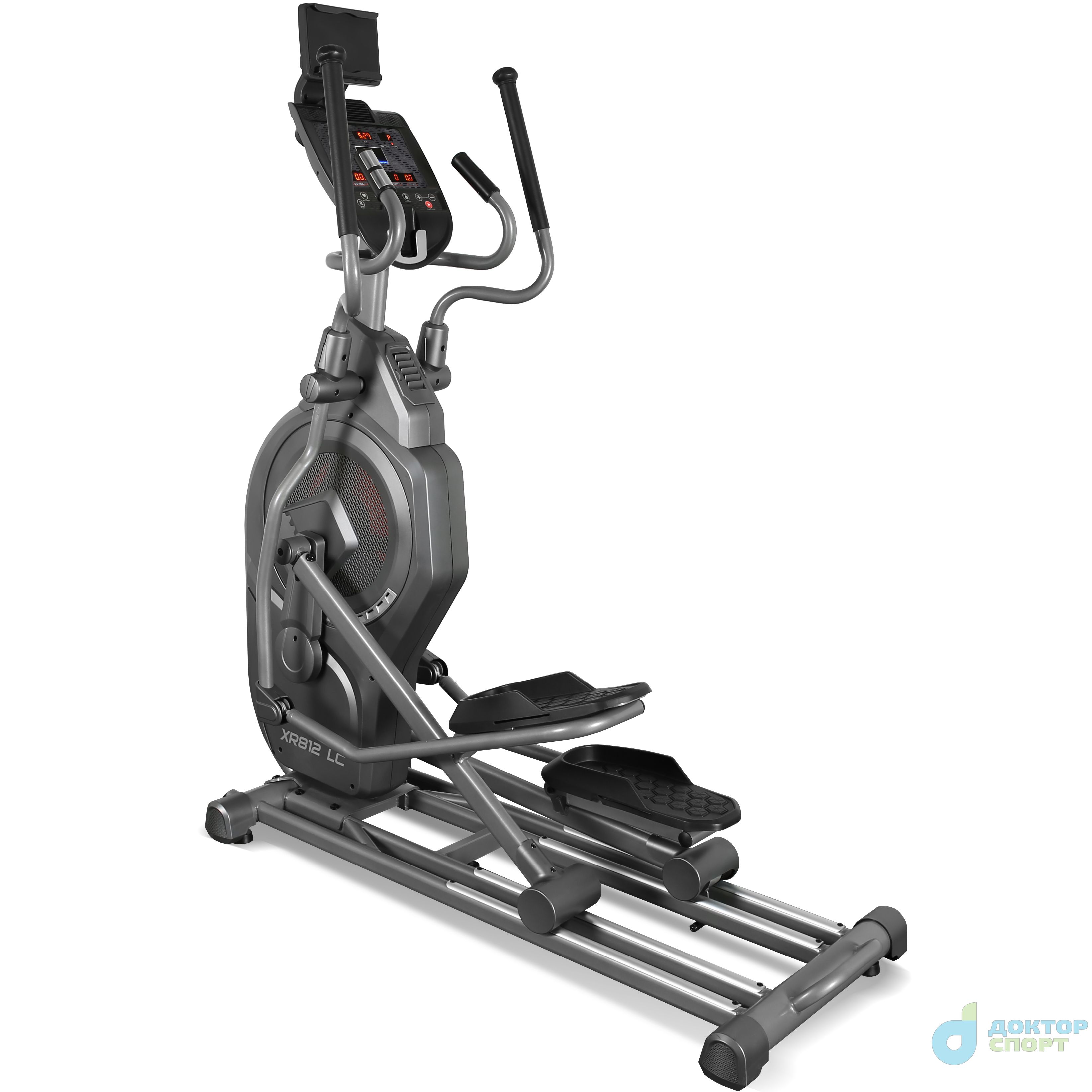 ?Переднеприводный эллиптический эргометр BRONZE GYM XR812 LC рассчитан на полукоммерческое использование и ориентирован на отели, корпоративные залы, спортивные школы, санатории и прочие объекты с невысокой проходимостью. Это также отличное решение для дома. Эллипс рассчитан на тех пользователей, которым требуется надежный, прочный тренажер с великолепной биомеханикой и широким набором различных опций. За счет инновационного вертикального расположения приводной системы XR812 LC имеет небольшие компактные размеры и, помимо этого, обладает впечатляющим высокотехнологичным дизайном. Сама приводная система построена с использованием одной из самых последних разработок - технологии EMS airFLOW™. Это электромагнитная система нагружения с дополнительным аэродинамическим сопротивлением. Зачастую, на эллипсах - и обычно это происходит ближе к максимальным уровням нагрузки - движения педалей становятся неравномерными. Обычно это происходит в диапазоне цикла движения от 12 до 6 "часов". Дело в том, что конструкция большинства эллипсов несовершенна и при естественном давлении стопы сверху вниз скорость движения педалей также увеличивается (снизу вверх - уменьшается). Магниты, прижимающие маховик, при это работают с постоянной нагрузкой. Конечно, вес самого маховика обладает инерцией и помогает сгладить разность давления. Но этого недостаточно. Поэтому для большей плавности движений и равномерного распределения нагрузки на всем цикле движения в XR812 LC используется дополнительная аэродинамическая нагрузка airFLOW™. Отдельно стоит упомянуть и рамную конструкцию XR812 LC, построенную с учетом последних биогеометрических исследований. Система сложных рычагов (технология Biometry™ с сочленениями на подшипниках FAG) идеально имитирует естественные движения человека и, помимо этого, вносит свой весомый вклад в равномерное распределение крутящей нагрузки. Безусловно, стоит также отметить длину шага 52 см. и супермалый Q-Фактор E.S.Q.F™ - расстояние между педалями составляет всего 10 см. За плавное и тихое скольжение отвечают сдвоенные полиуретановые ролики коммерческого класса, которые передвигаются по усиленным парным направляющим. Последние обеспечивают как устойчивость тренажера, так и его надежность. Для снижения коэффициента трения роликов (то есть увеличения срока их службы) в местах их контакта с направляющими расположены специальные алюминиевые прокладки. Тренировочная консоль BRONZE GYM XR812 LC рассчитана на коммерческое использование и представляет собой LED дисплей и 4 буквенно-цифровых экрана. Основной LED дисплей отображает программные профили, а буквенно-цифровые экраны выводят все необходимые параметры тренировки. В число самих программ входят 22 различных режима, куда относятся 12 предустановленных программных профилей, ручной режим, 4 пульсозависимые и 4 пользовательские программы, а также Ватт режим (диапазон нагрузки находится в диапазоне от 10 до 350 Ватт). Здесь также есть жироанализатор (Body Fat) и функция оценки восстановления организма после физических нагрузок (Recovery). Мультимедийная компонента представлена динамиками мощностью 3 Ватта, а также разъемом AUX IN для подключения мобильных устройств и воспроизведения через них аудио-файлов. Есть также USB вход, он используется для зарядки смартфонов и планшетов. Полезная опция - подставка под мобил