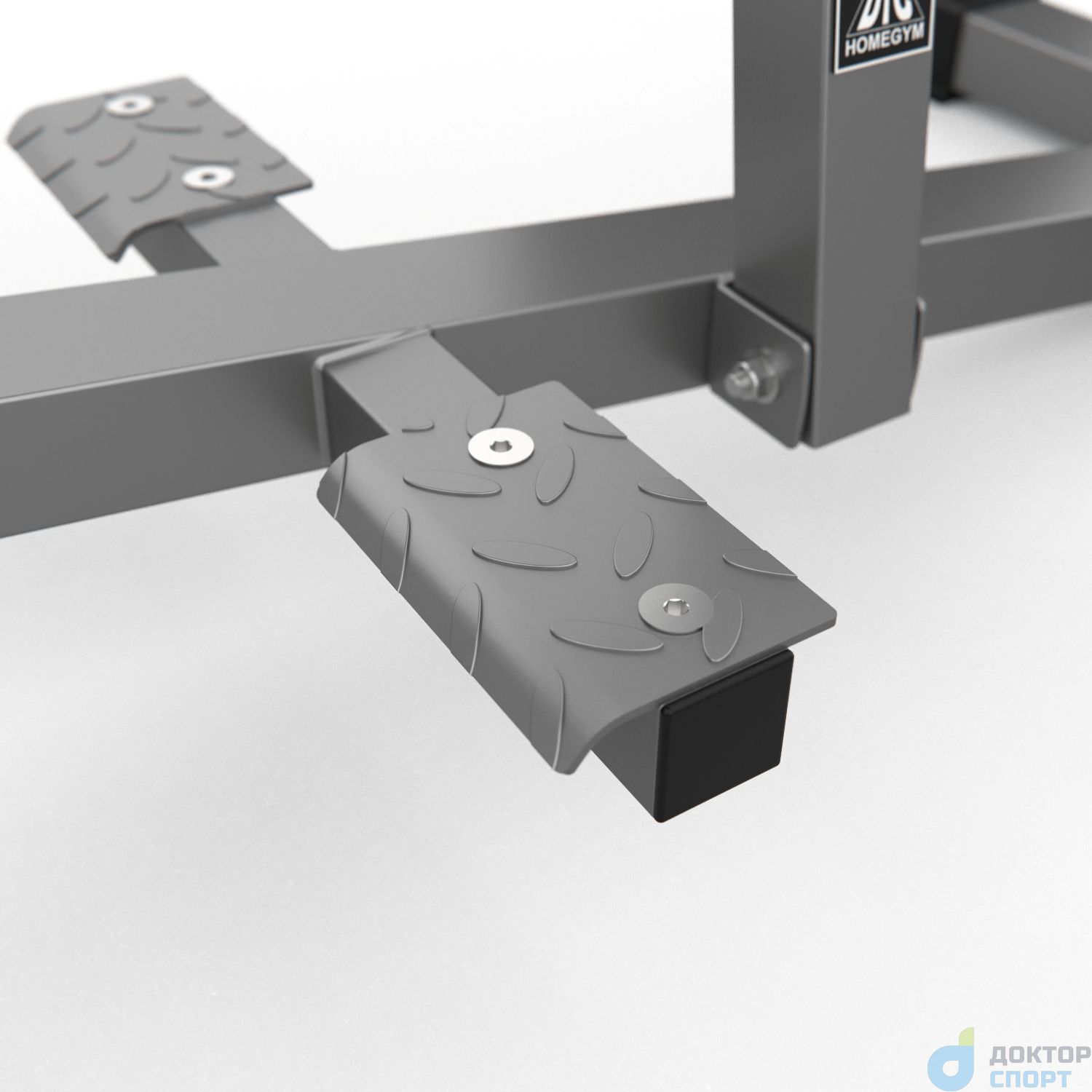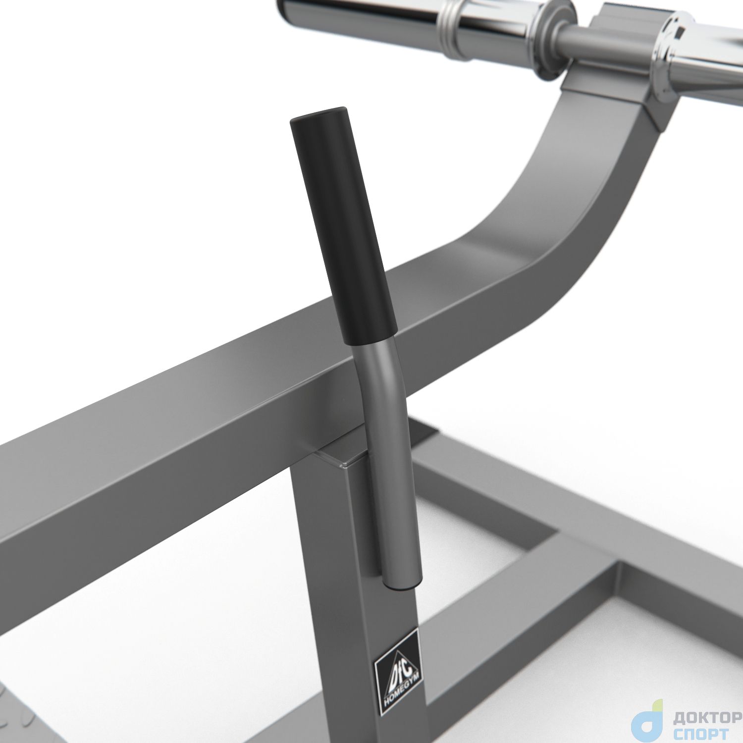 Тренажёр DFC D100866 предназначен для развития икроножных мышц. Перед началом занятий снимите перекладину с весами при помощи ручки справа. Отталкиваясь стопами и держась за поручни, приподнимайте колени, не отрывая стопы от платформ.