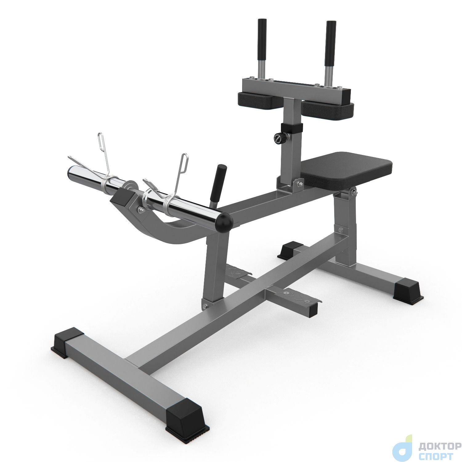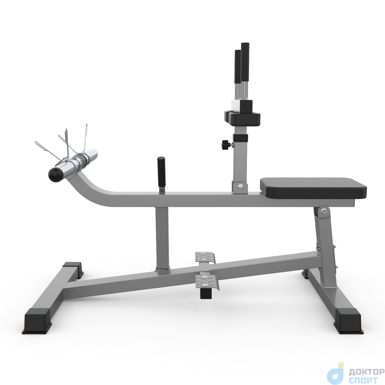 Тренажёр DFC D100866 предназначен для развития икроножных мышц. Перед началом занятий снимите перекладину с весами при помощи ручки справа. Отталкиваясь стопами и держась за поручни, приподнимайте колени, не отрывая стопы от платформ. Максимальная нагрузка до 300 кг, нагрузка на сиденье и подушки для упора коленей до 120 кг. Нагрузка на держатели для дисков до 300 кг. В комплекте поставляются пружины для дисков. Упор для ног регулируется по высоте на 4 уровня. -