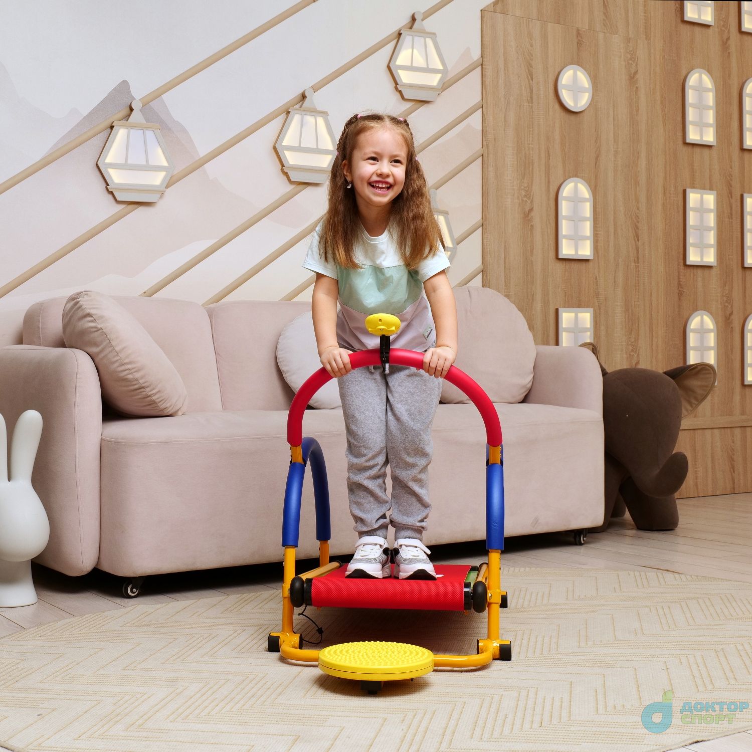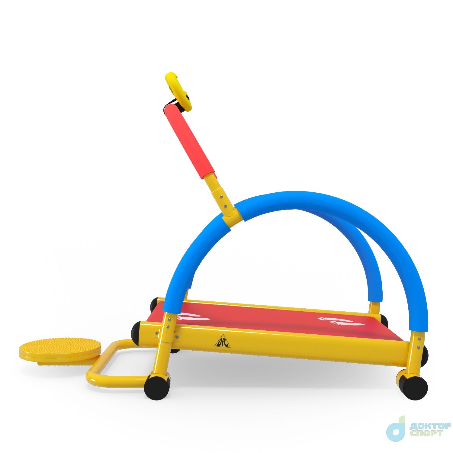 Детская беговая дорожка VT-2301T с дополнительным снарядом: твистером. Благодаря занятиям на твистере, ребёнок укрепляет мышцы кора, рук и ног, а также улучшает работу кишечника.
