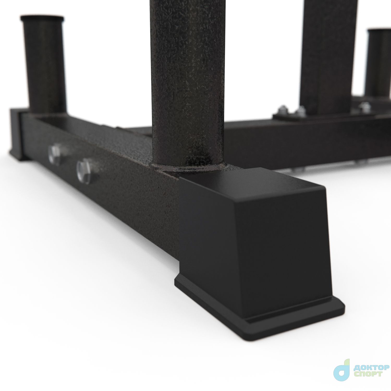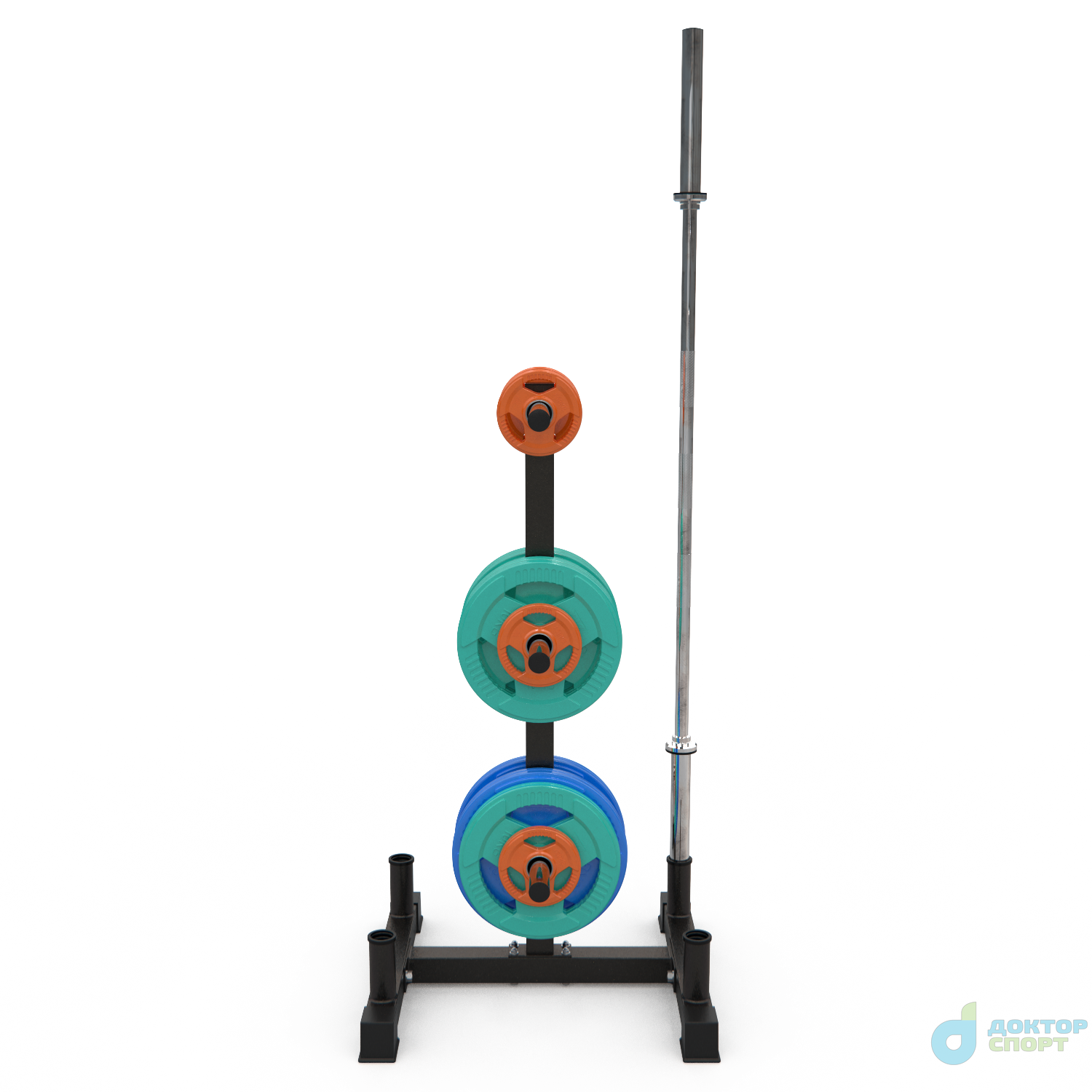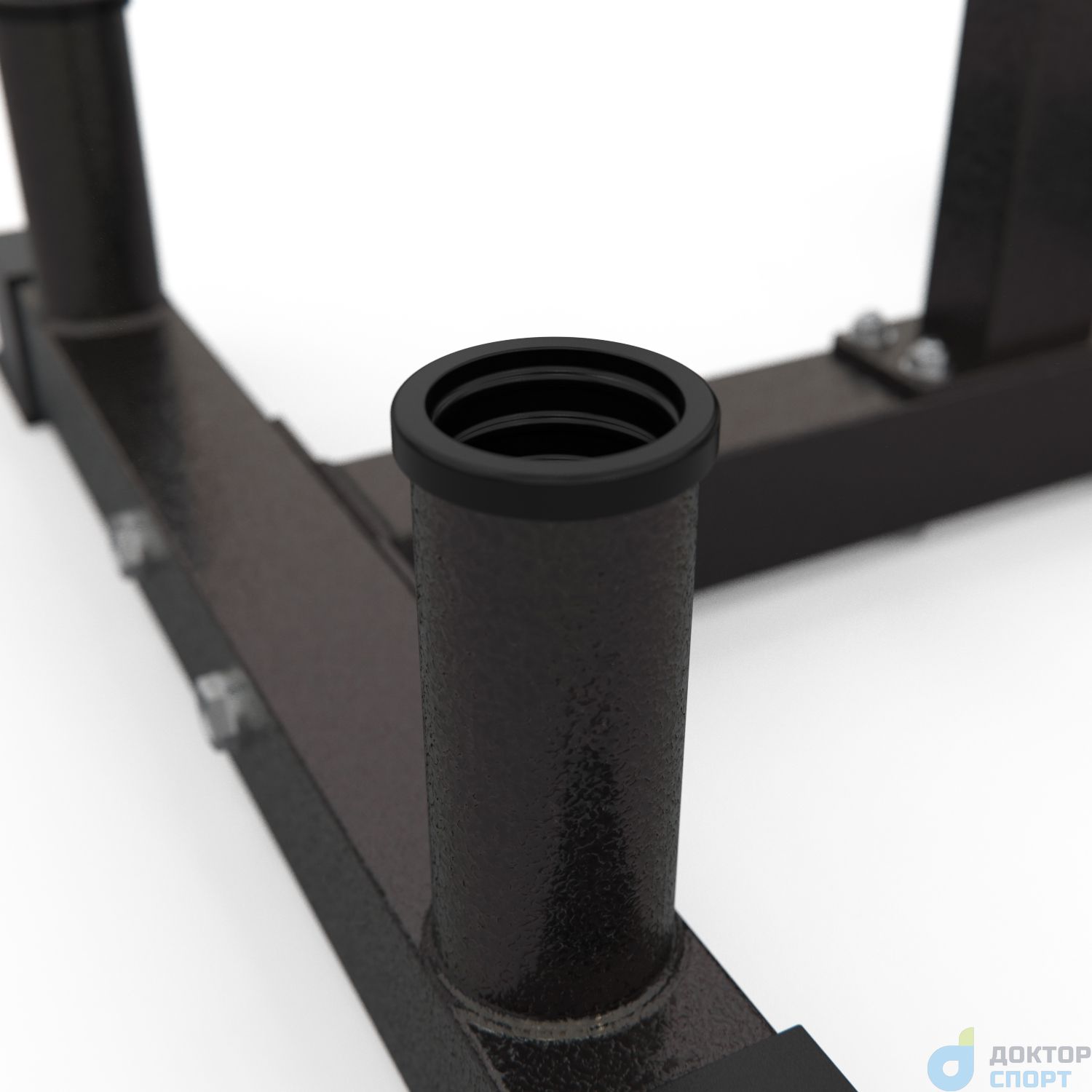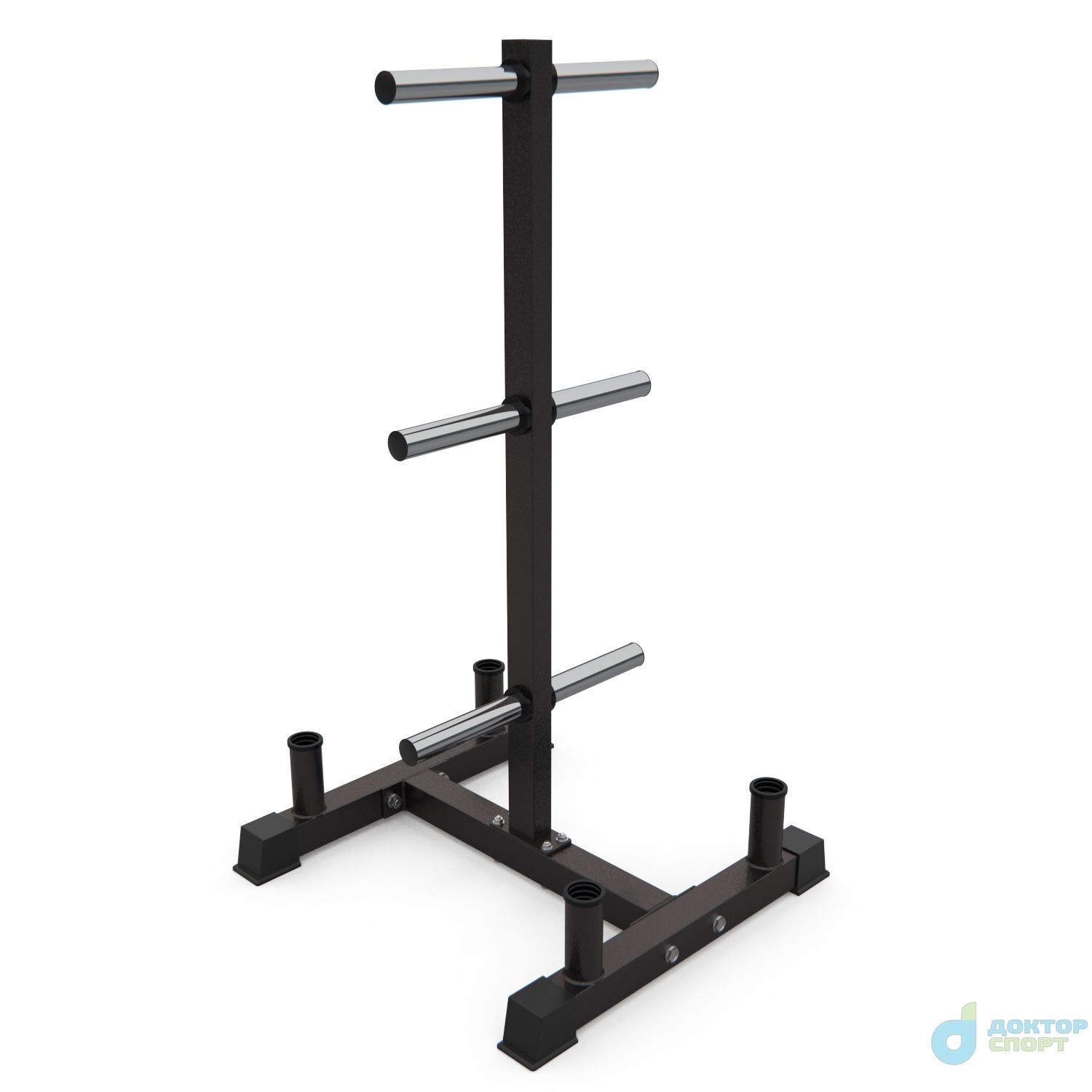 Стойка для хранения дисков и грифов DFC D875. Максимальная нагрузка до 100 кг, профиль основной рамы 50х50х2 мм. Подходит для дисков диаметром 51 мм, длина посадочного места 22,5 см. Расстояние между держателями дисков составляет 48 см в высоту. -