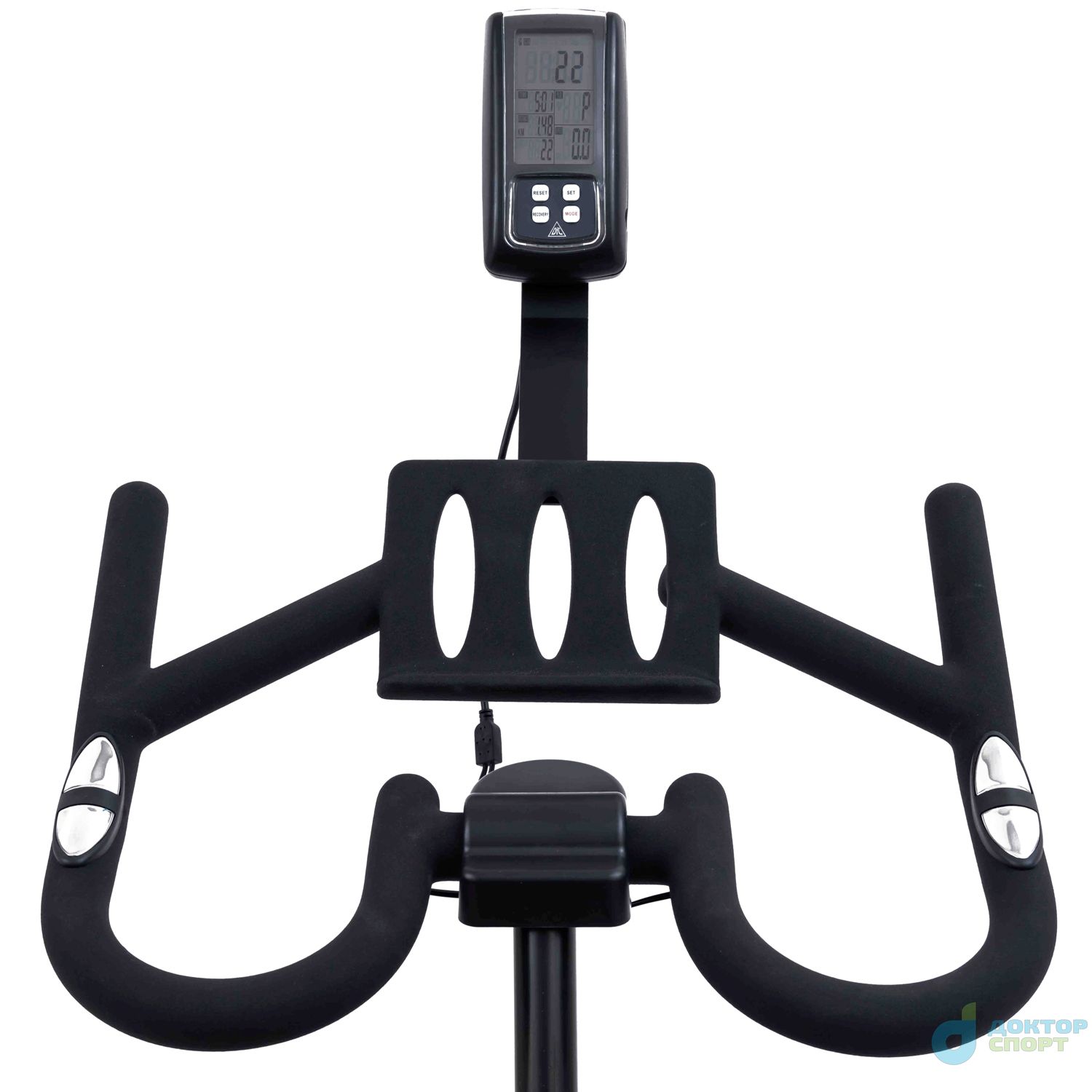 Консоль длиной 10 см с монохромным LCD дисплеем отображает такие параметры, как: время, дистанция, количество оборотов и скорость. Эти данные помогут пользователю контролировать тренировку и успешнее добиваться желаемых результатов.