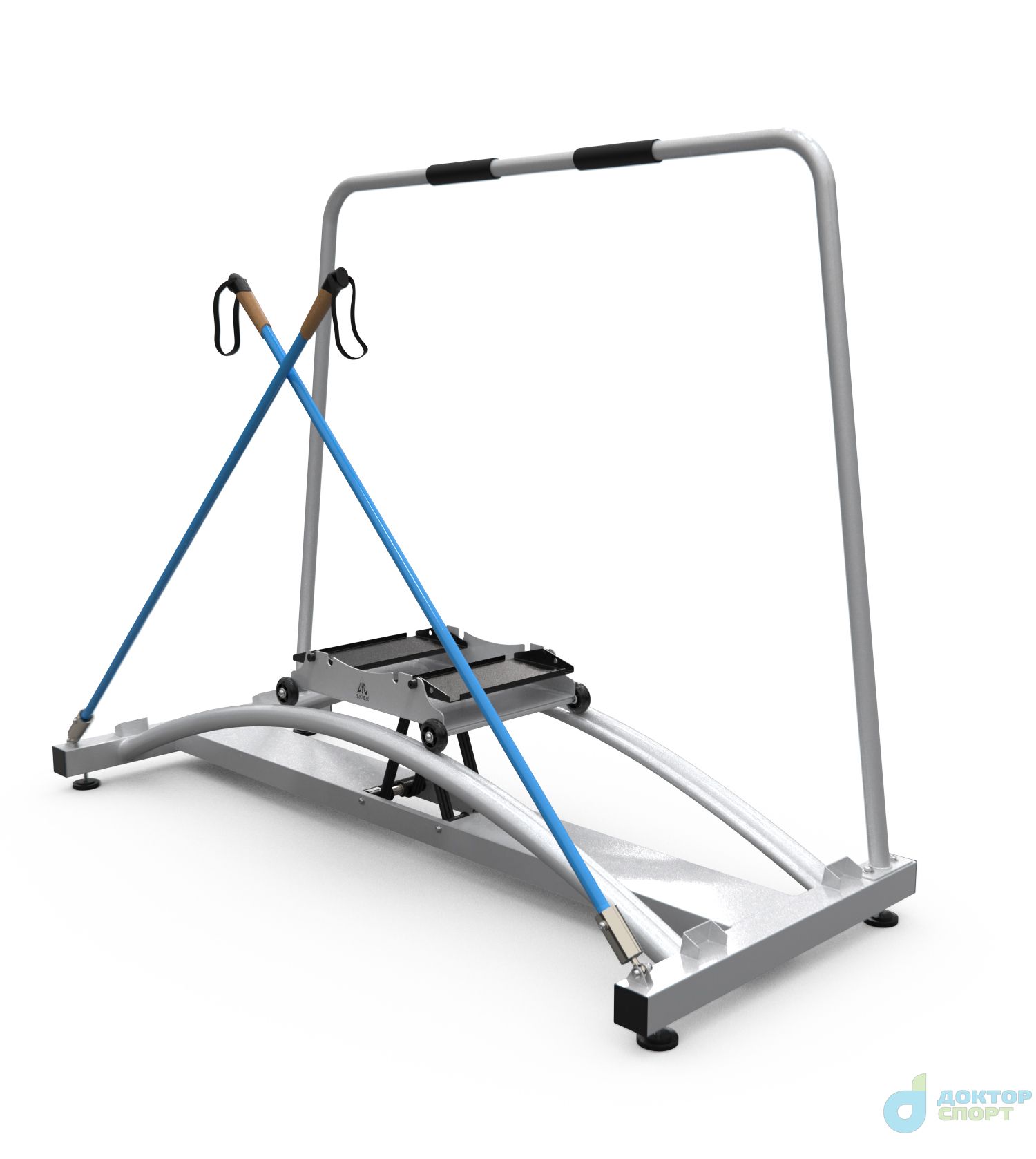 Педали и поручни горнолыжного тренажёра SkiBase обеспечивают комфорт и безопасность во время занятий, позволяя вам сосредоточиться на улучшении своей физической формы. Размер лыжных палок составляет 131,5 см.