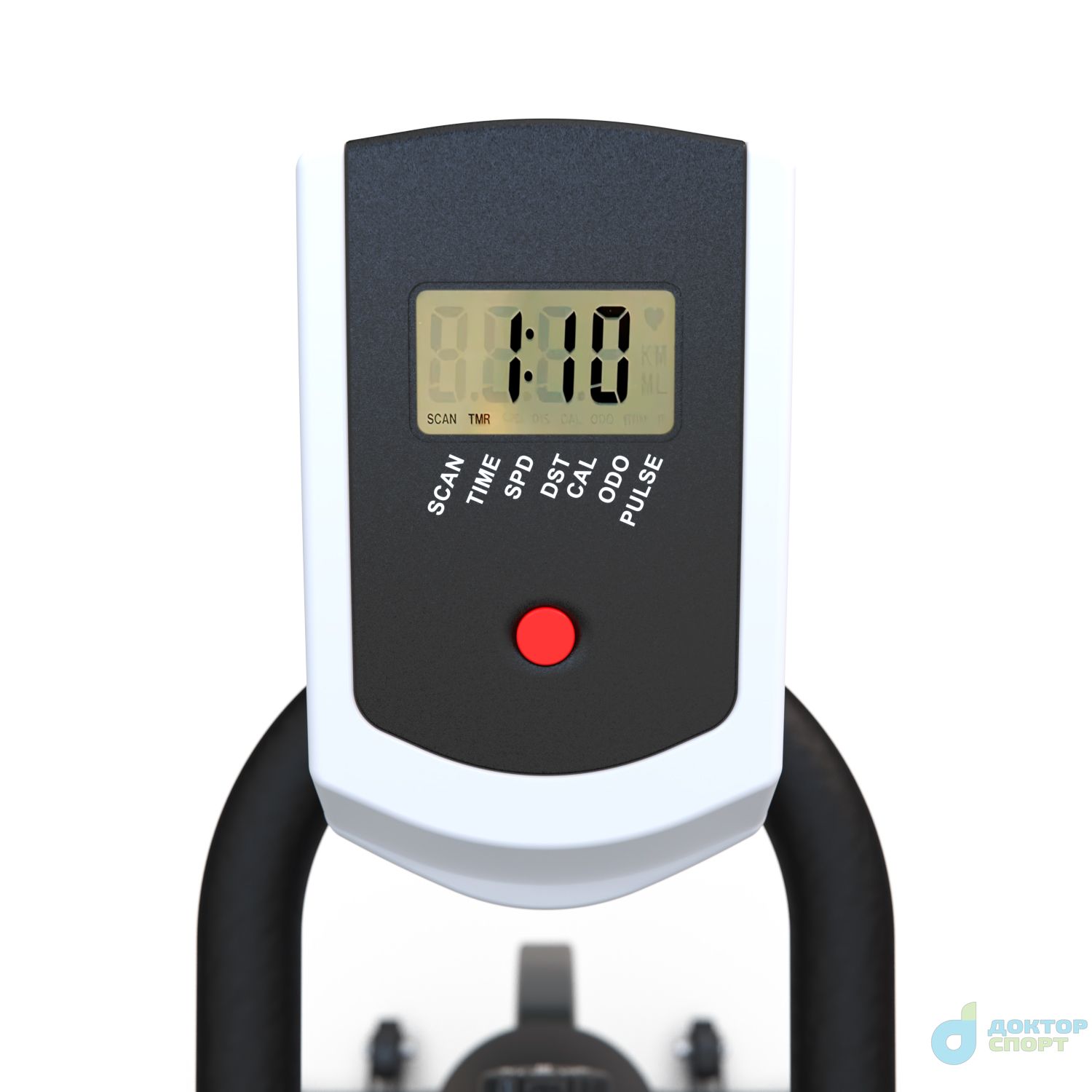 Трехкомпонентный шатун и колодочная система нагрузки обеспечивают плавное и бесшумное вращение маховика весом 17 кг. Бесступенчатая регулировка нагрузки и механическая регулировка уровня сидения дают возможность выбрать индивидуальный уровень тренировки.