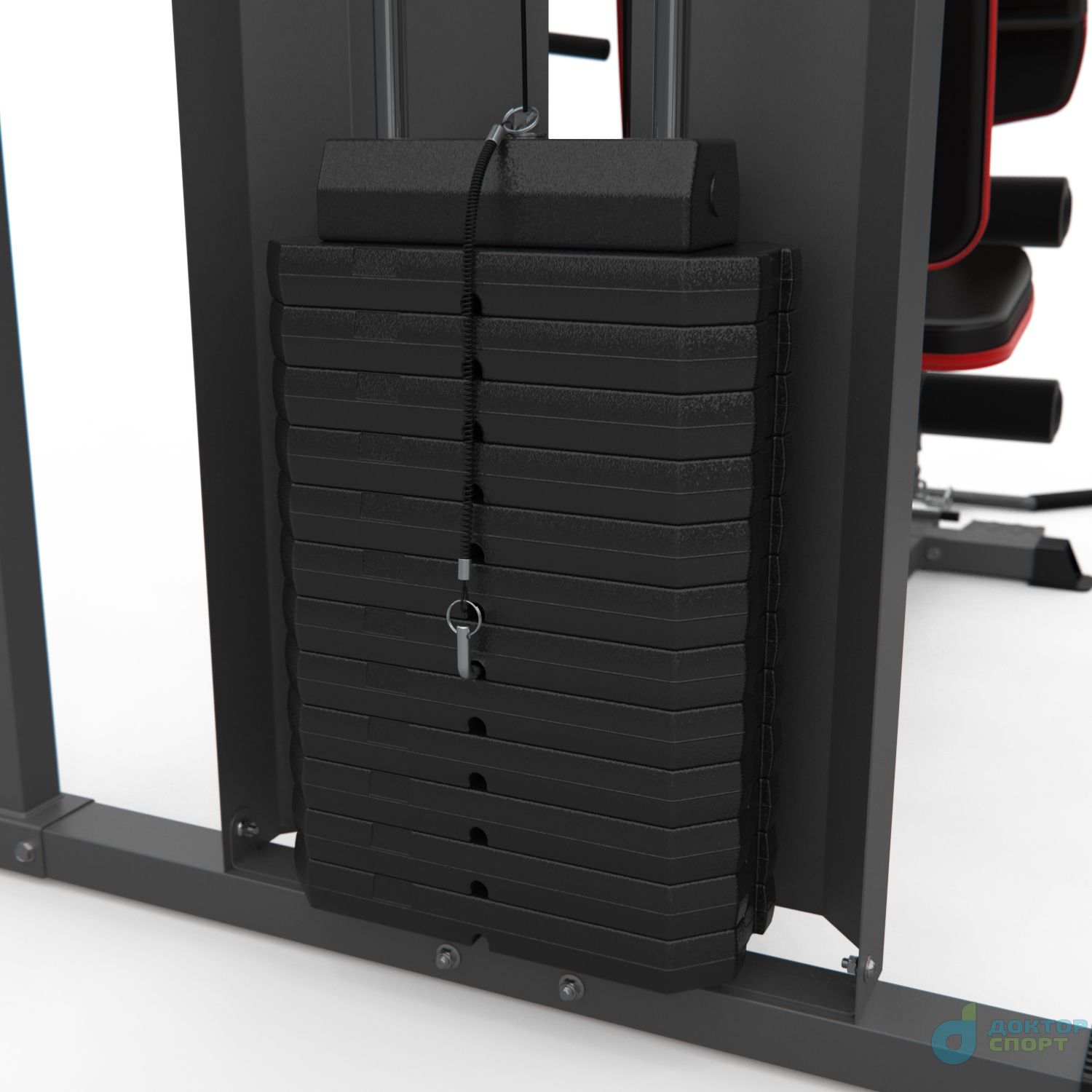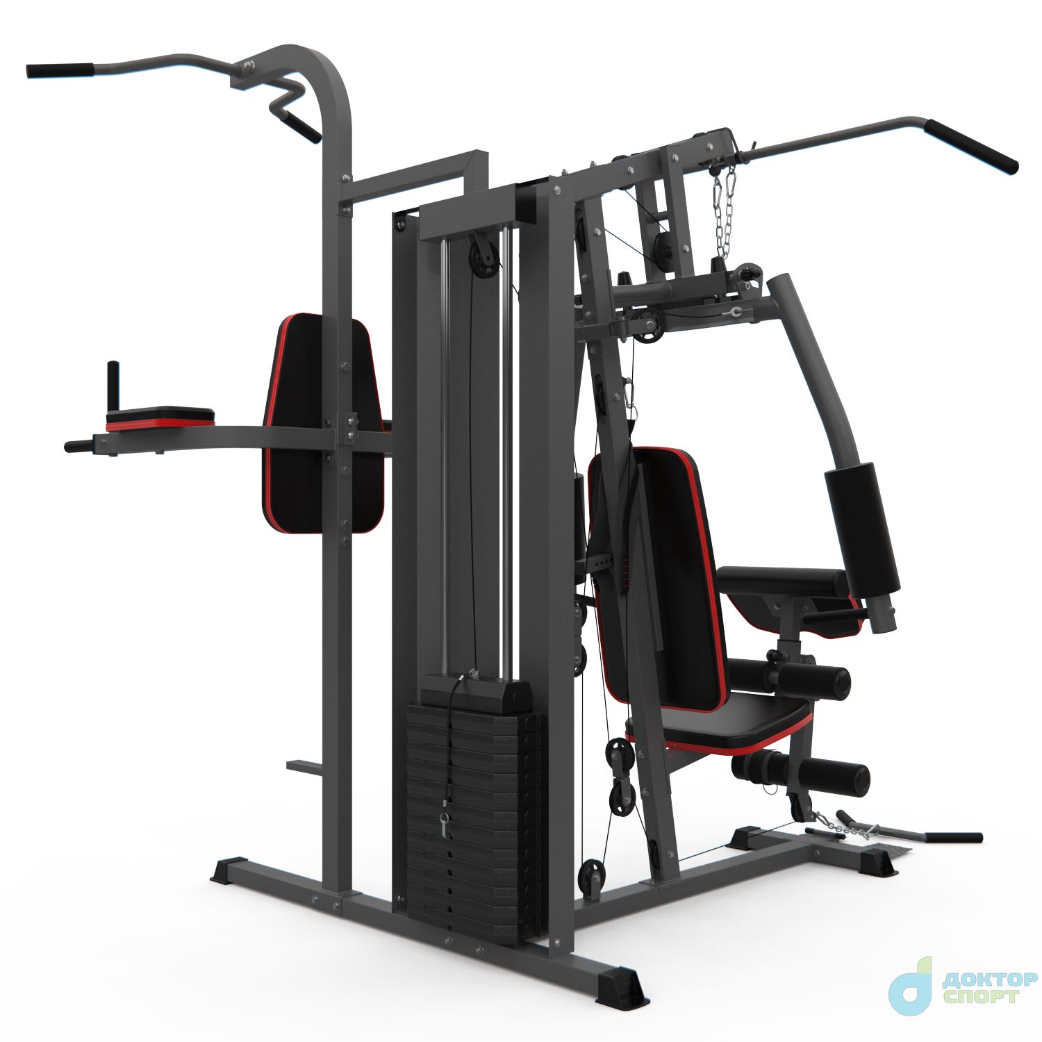 Многофункциональный силовой комплекс DFC D7004 оснащён множеством снарядов для упражнений на все группы мышц. Максимальный вес пользователя до 120 кг. Профиль основной трубы 70 х 50 х 1,5 мм. 11 весовых пластин в комплекте. Спинка регулируется по горизонтали на 3 уровня. Вес стека 72 кг, 1 блок – 6 кг.