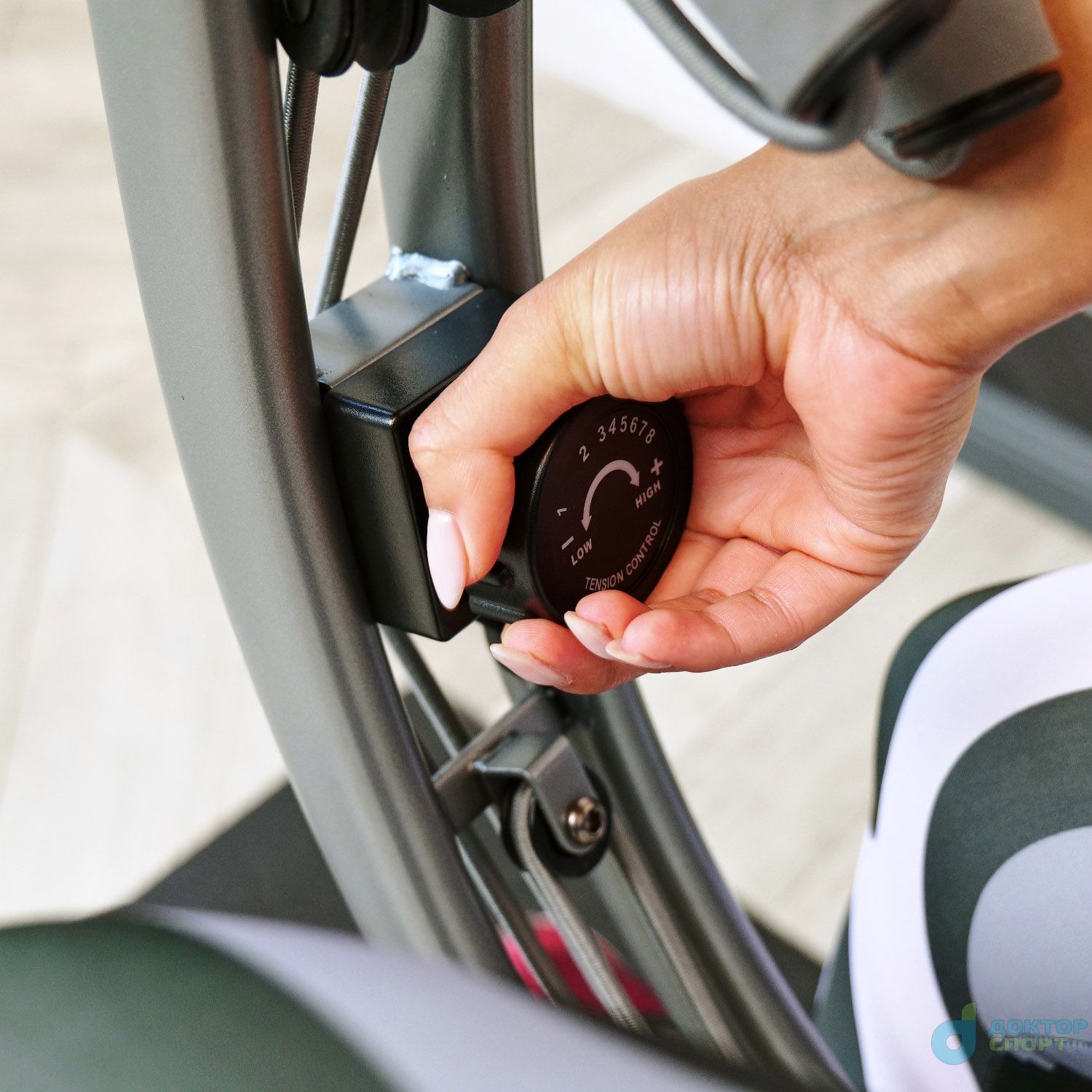 Система нагрузки магнитная, регулируется механически, всего 8 уровней, что позволяет подобрать оптимальную нагрузку под свой уровень подготовки. Маховик инерционный, весом 3 кг, обеспечивает бесшумную работу велотренажера.