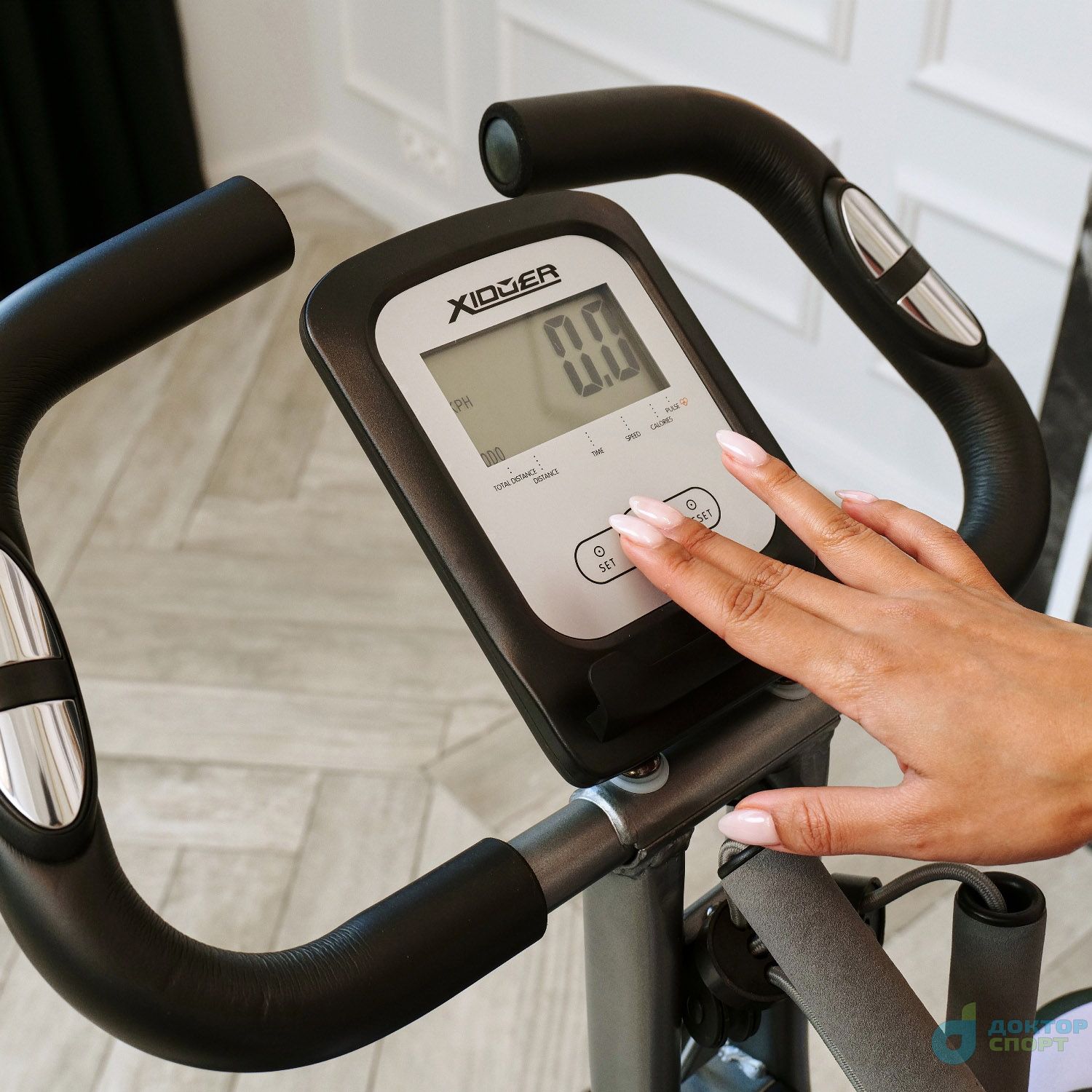 Максимальный вес пользователя до 120 кг. Велотренажер имеет складную конструкцию, что позволяет удобно хранить его в домашних условиях. Сиденье и спинка из полиуретана обеспечивают комфорт во время тренировки.