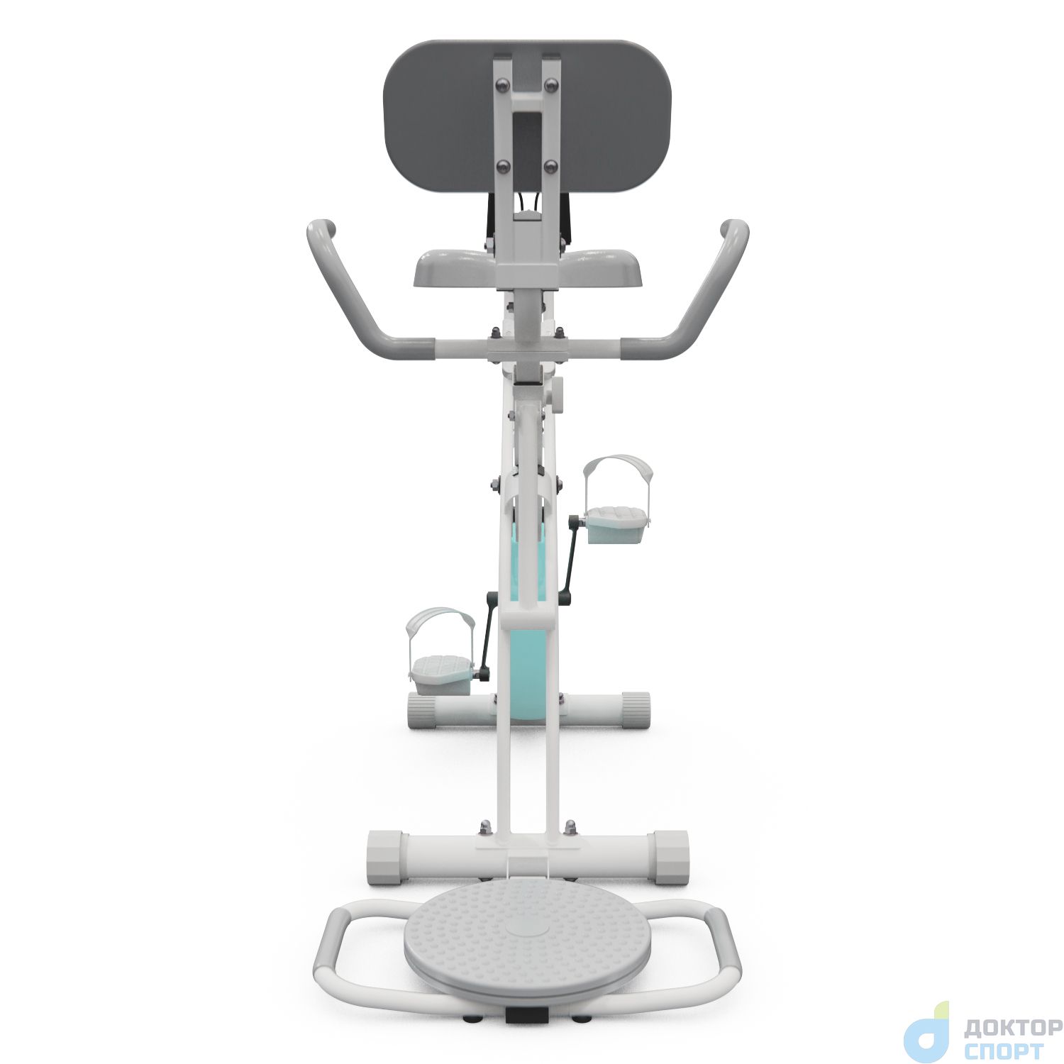 Одной из особенностей этого велотренажера является его удобная складная конструкция. Сиденье обладает спинкой и поручнями для комфорта пользователя, а также имеет карман для хранения гаджета. Также в комплект входит твистер, который можно использовать для дополнительной тренировки пресса.