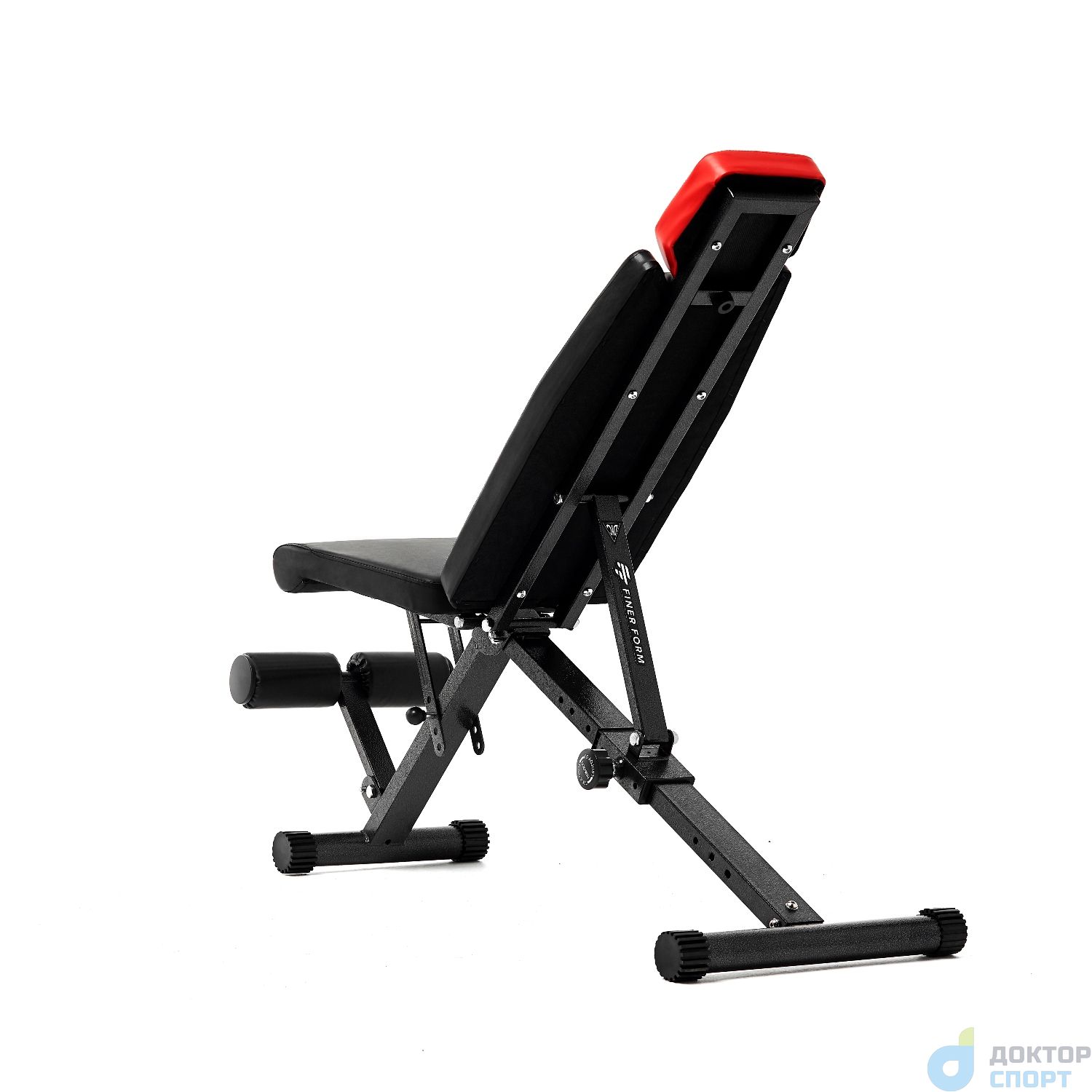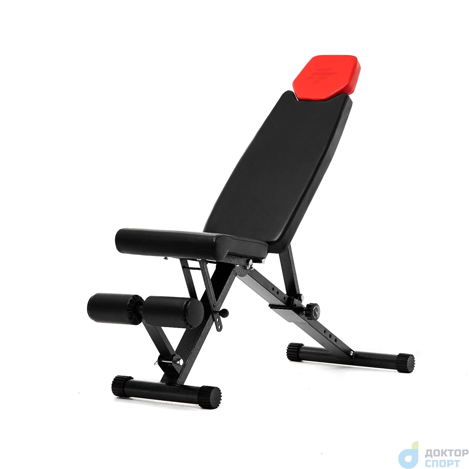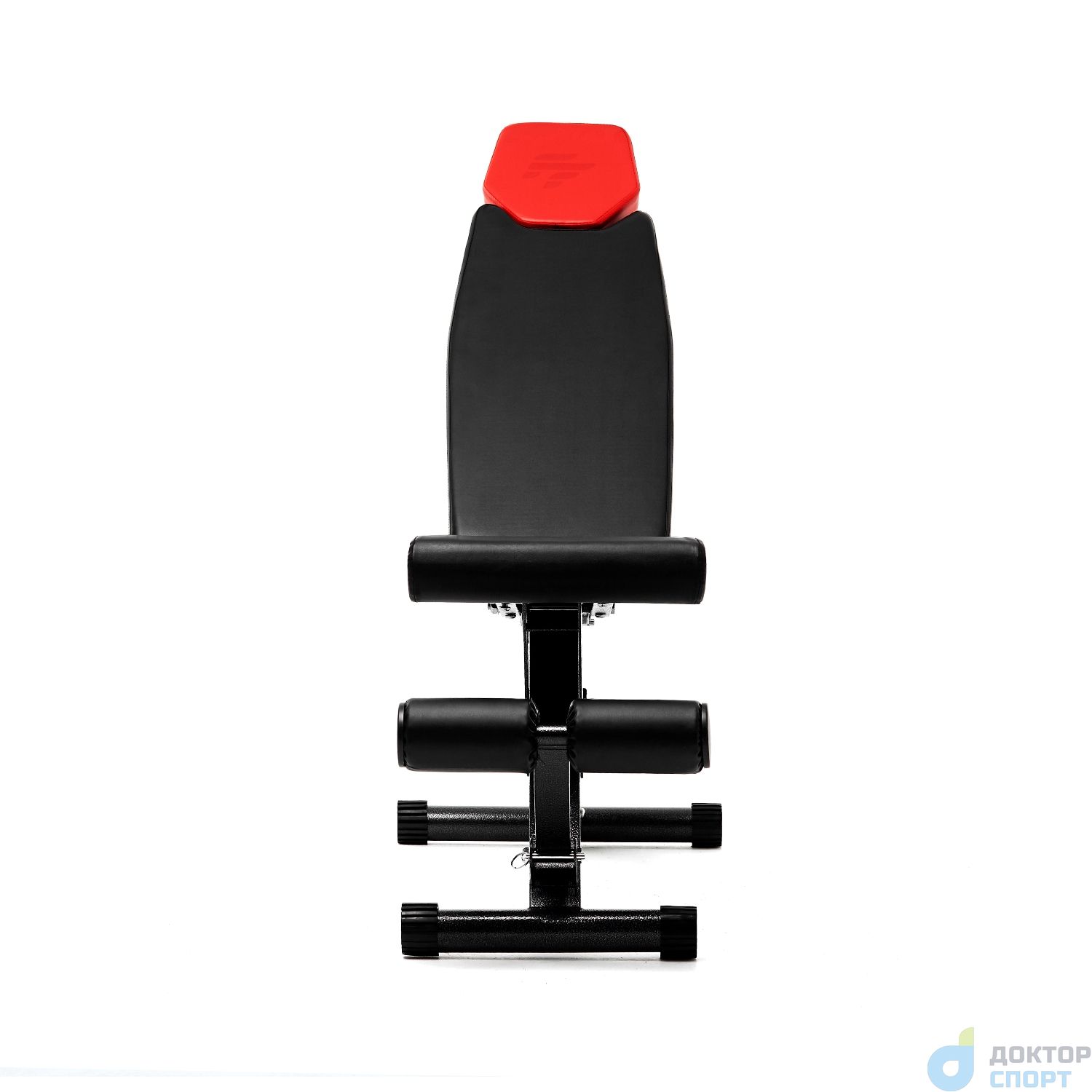Функциональная и стильная скамья предназначена для домашнего использования. Имеет необычный дизайн: подголовник имеет ярко-красный цвет. Остальная конструкция выполнена в чёрном цвете. Такой дизайн подойдёт как для небольшого домашнего фитнес-зала, так и впишется в интерьер любой комнаты в доме или квартире. Комфортные тренировки Максимальный вес пользователя до 150 кг. Комфорт во время тренировок обеспечивает мягкая набивка сиденья, спинки и подголовника толщиной 5 см. Верхний материал обивки — высококачественный нескользящий кожзаменитель. На ножках скамьи предусмотрены обрезиненные накладки для гарантии устойчивости: скамья не скользит даже при интенсивных нагрузках. Установить её можно в любом месте, благодаря компенсаторам неровности: при наклоне или неустойчивом положении достаточно подкрутить накладку, чтобы устранить неудобство. -