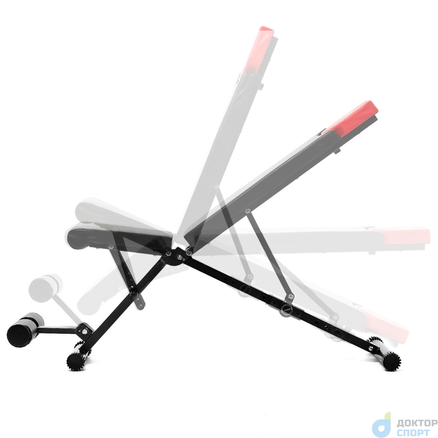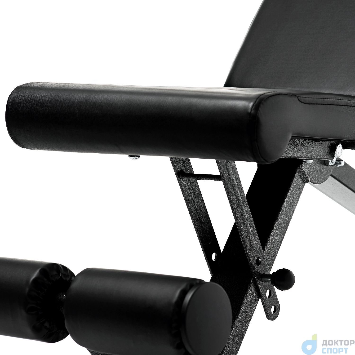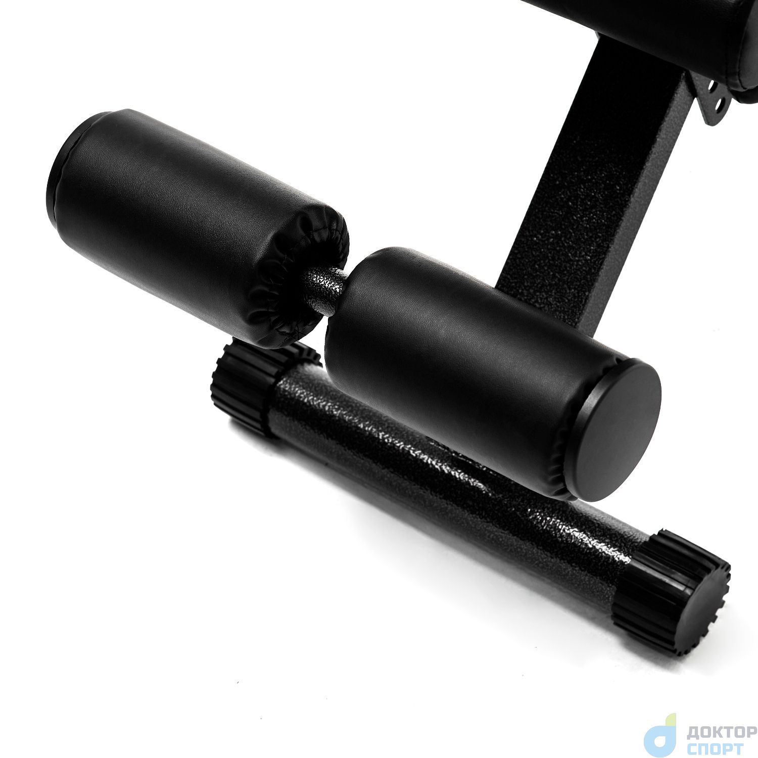 Максимальный вес пользователя до 150 кг. Комфорт во время тренировок обеспечивает мягкая набивка сиденья, спинки и подголовника толщиной 5 см. Верхний материал обивки — высококачественный нескользящий кожзаменитель. На ножках скамьи предусмотрены обрезиненные накладки для гарантии устойчивости: скамья не скользит даже при интенсивных нагрузках. Установить её можно в любом месте, благодаря компенсаторам неровности: при наклоне или неустойчивом положении достаточно подкрутить накладку, чтобы устранить неудобство.