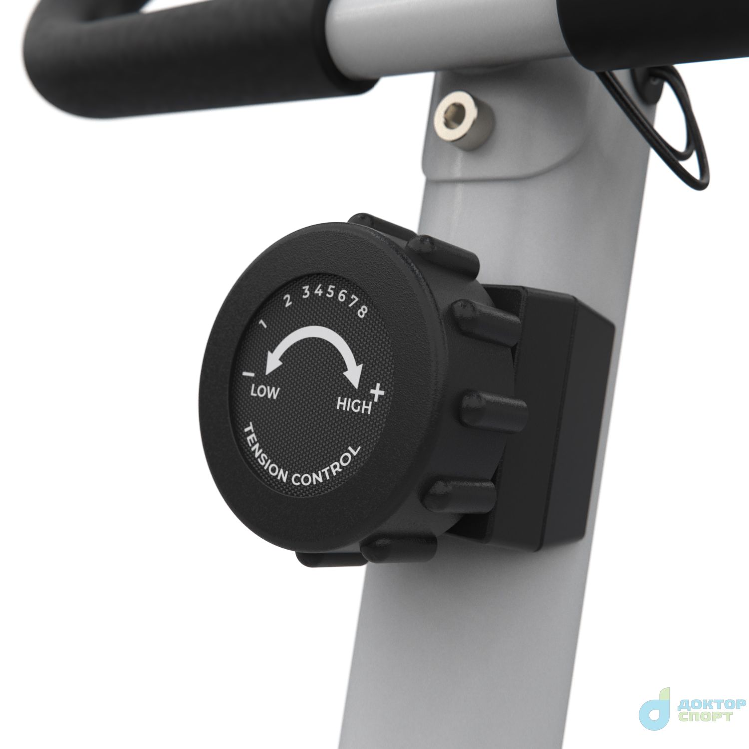 Ручная регулировка магнитной нагрузки с помощью ручки на стойке тренажера. Всего 8 положений.