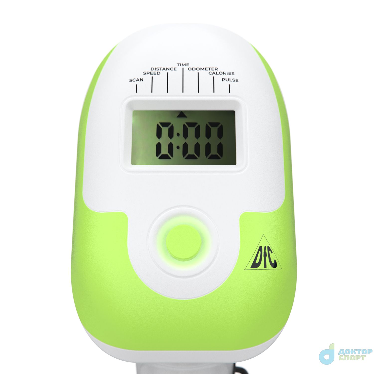 Компьютер с LCD дисплеем и кнопками управления отображает необходимые параметры тренировки: скан, скорость, время, дистанция, калории, пульс.