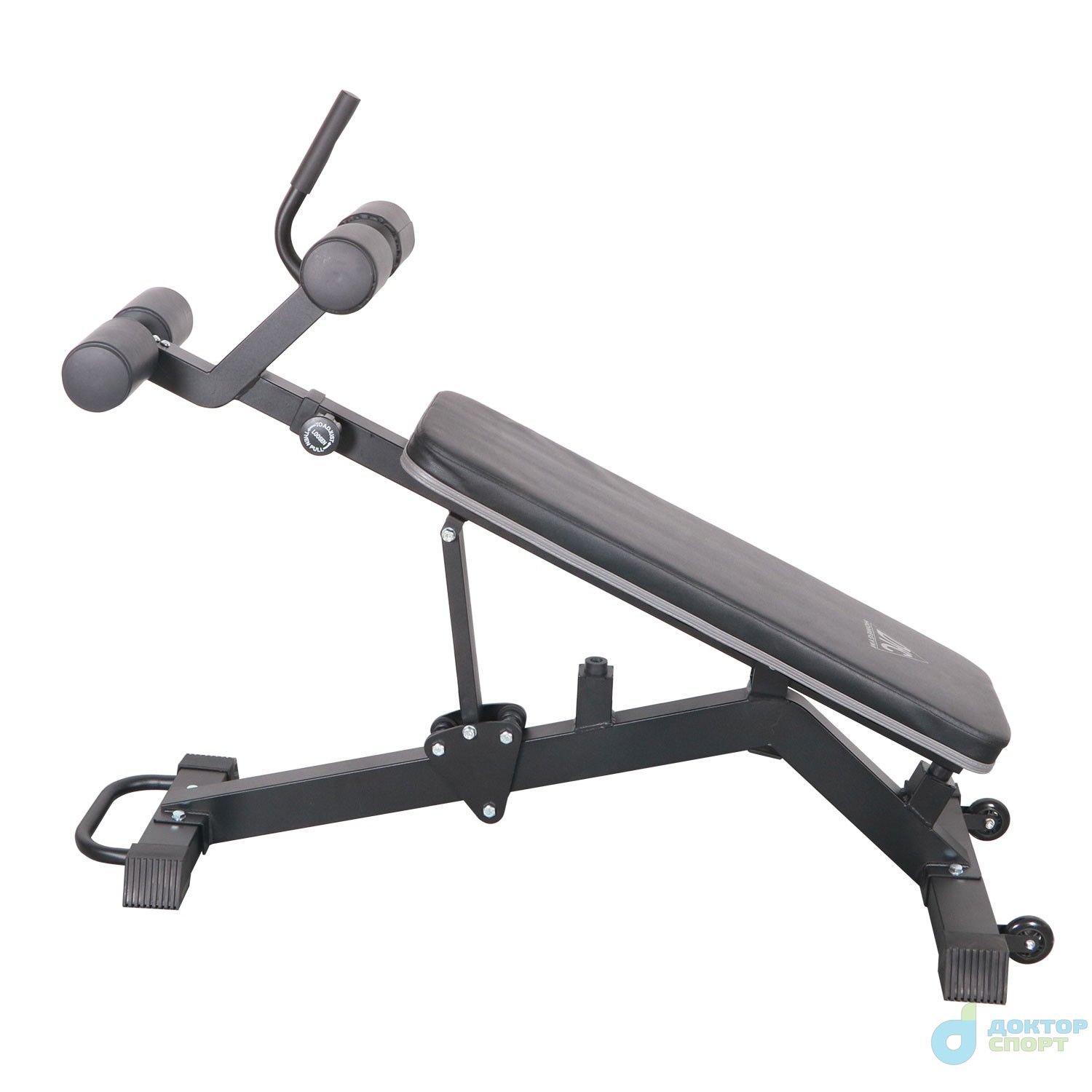Скамья регулируется по углу наклона в широком диапазоне, до 24°, включая отрицательный. Всего 6 уровней регулировки.