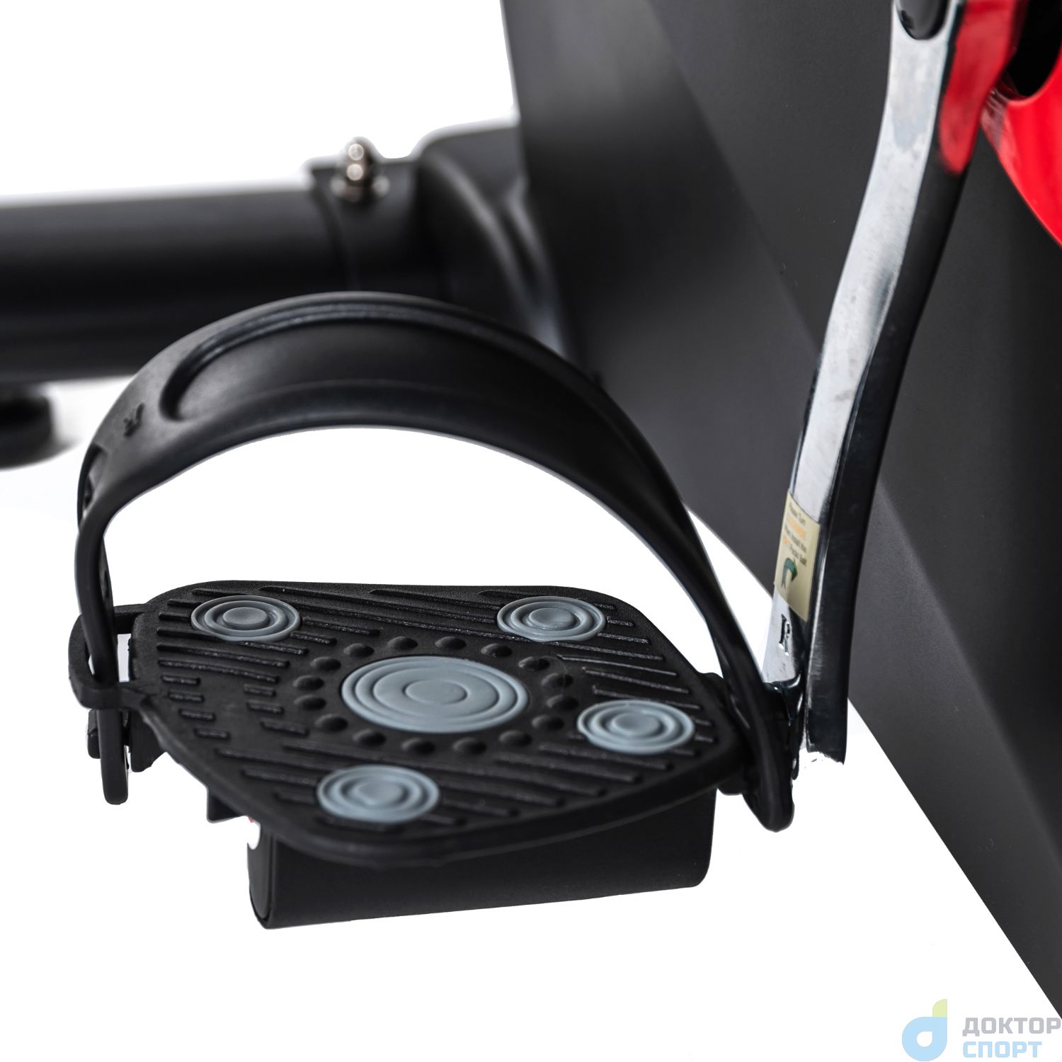 Для безопасности педали оснащены нескользящим покрытием и регулируемыми фиксирующими ремешками. В этой модели практичный педальный узел: трёхкомпонентный шатун (при поломке педали можно заменить только её, а не весь узел). Расстояние между педалями 20,3 см.