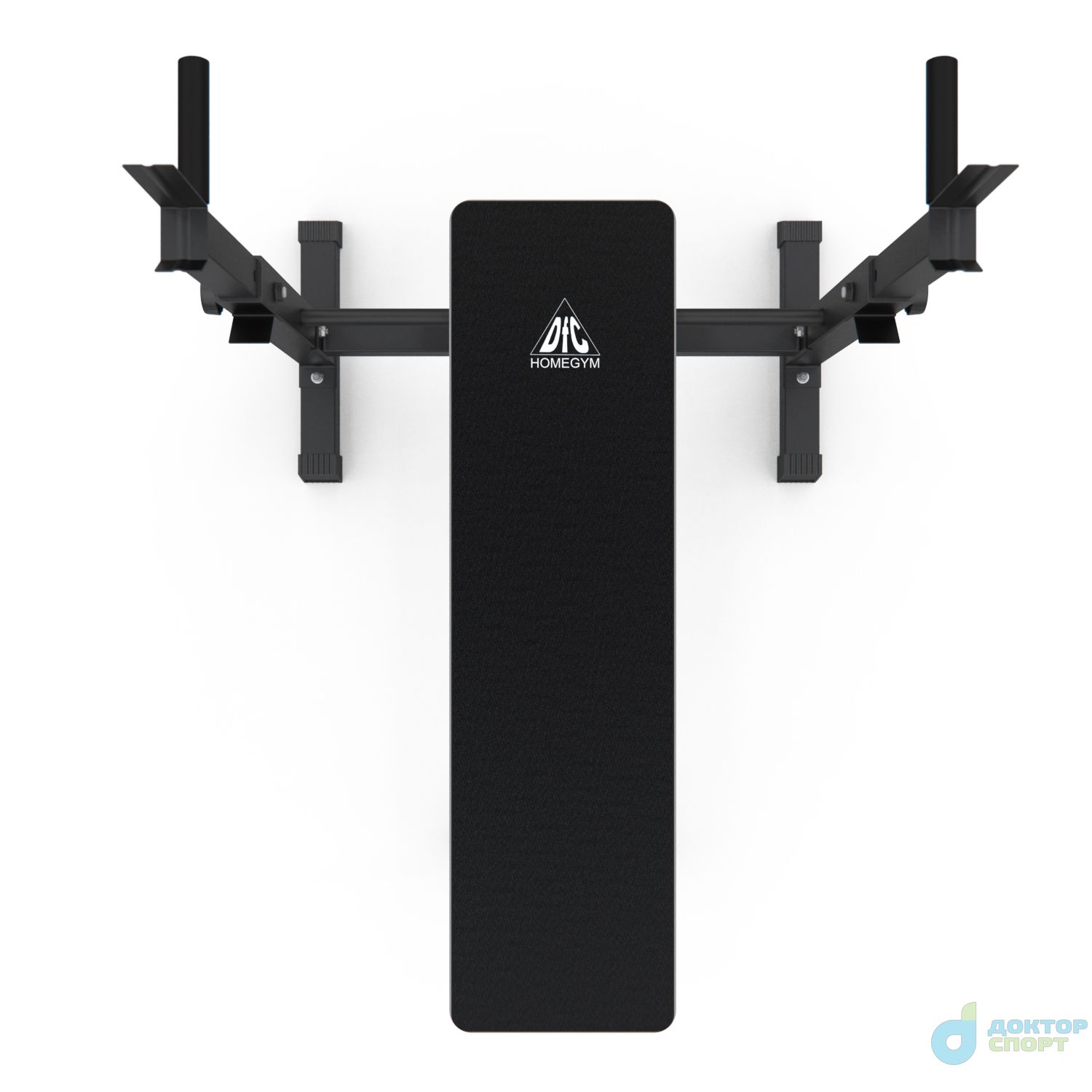 Скамья силовая DFC D6453L для домашнего использования имеет складную конструкцию, компактные размеры и выдерживает до 180 килограмм веса. В комплектацию входят стойки для штанги (штанга в комплект не входит). Предназначена в первую очередь для силовых упражнений на грудь (жим лёжа). Также можно использовать для тренировки пресса, мышц рук, ног (в том числе с использованием гантелей). Оснащение скамьи Скамья представляет собой единую складную конструкцию с основанием, обтянутым нескользящей тканью благородного серого цвета. Расстояние от скамьи до пола по нижнему краю (под скамьёй) - 42,5 см. У изголовья расположены две стойки с регулируемой высотой и двумя держателями. Верхний держатель штанги имеет ширину 81,5 см, что является отличительной особенностью скамьи в сравнении с D6453. Максимальная нагрузка на верхний держатель — 120 кг, на нижний — 100 кг. На задней части стоек есть ручки для упражнений на руки. На ножках имеются противоскользящие валики и компенсаторы неровности пола. Регулировка Скамью можно отрегулировать в трёх положениях с разным углом наклона: наклон 30 градусов, горизонтальное, а также вертикальное положение (в сложенном виде). Положение скамьи в наклонном виде поддерживается специальной ножкой. Стойки регулируются по высоте в диапазон от 81 до 99 см. Доступно 6 уровней с шагом в 3 см. Для регулировки на каждой стойке имеется специальная ручка. -