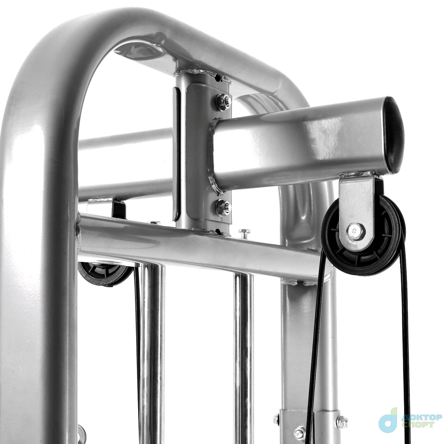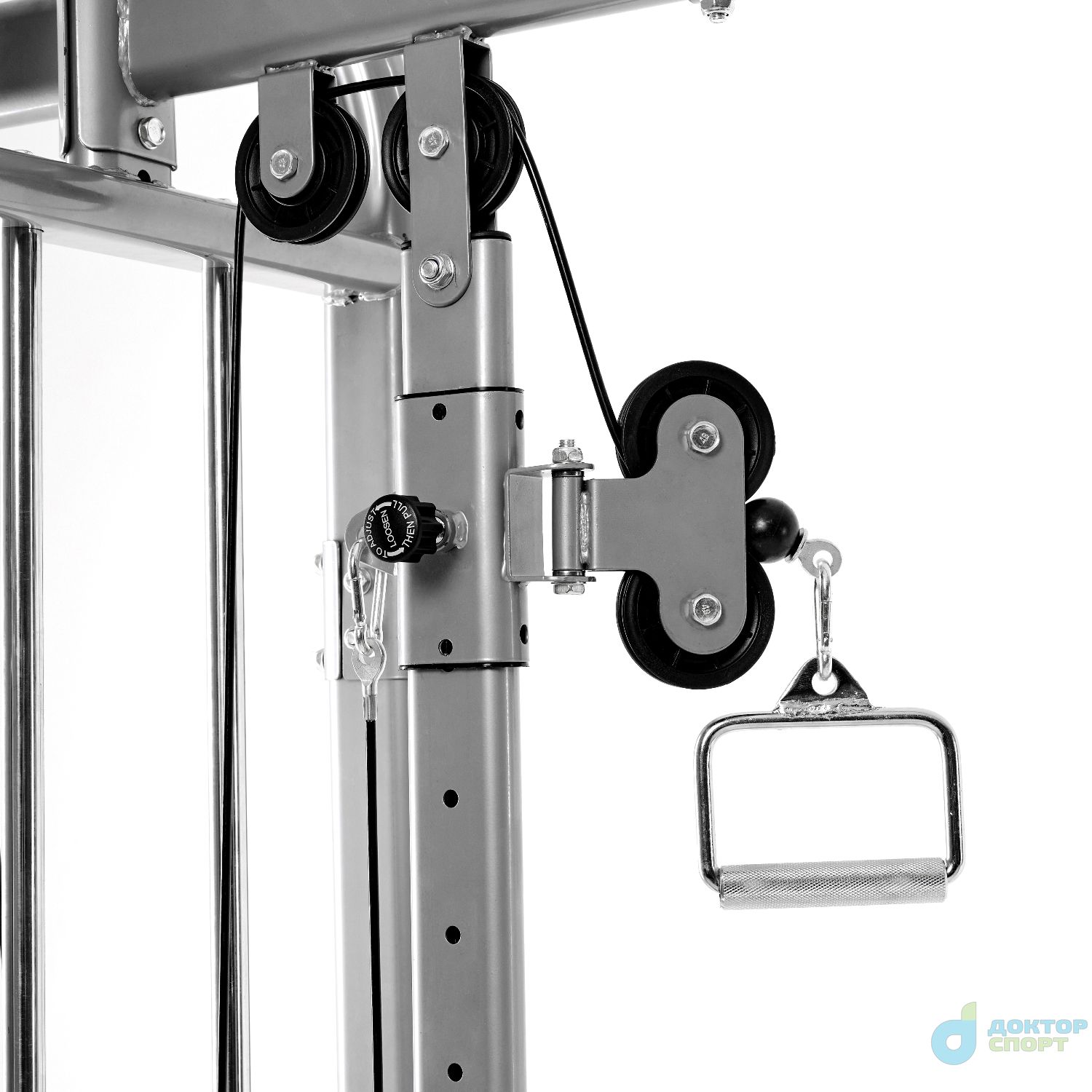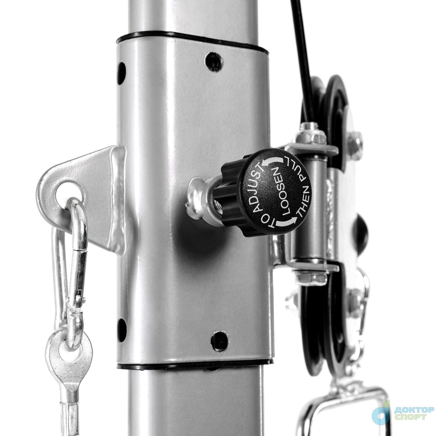 Кроссовер оснащён металлическими ручками с нескользящим хватом, которые регулируются по высоте в 11 положениях. При выполнении упражнений с верхней тягой, нагружаются мышцы рук, груди и верхнего отдела спины.