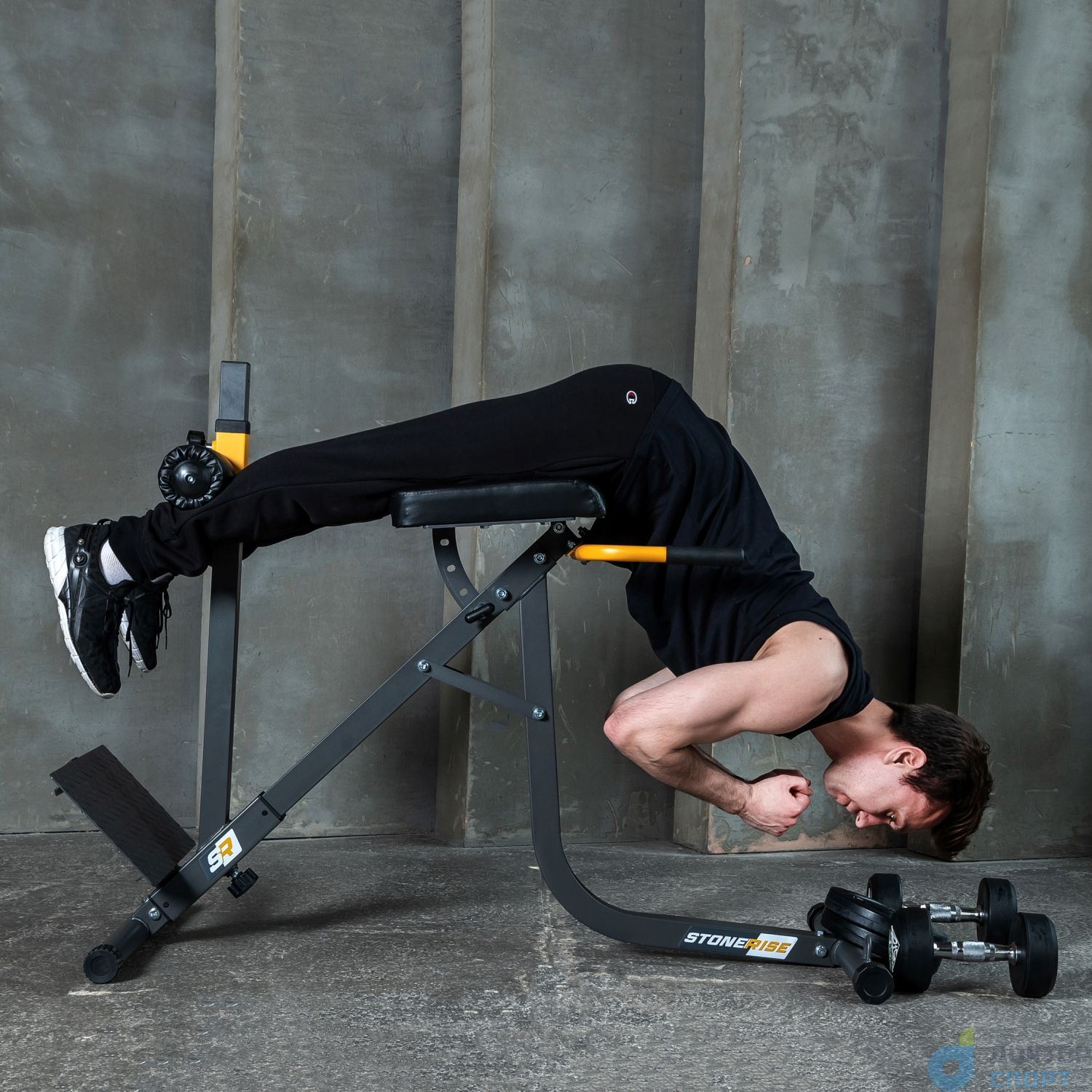Гиперэкстензия STONERISE HypeRise — это тренажёр, который используют для проработки мышц спины и бёдер. Тренажёр сконструирован таким образом, что позволяет выполнять гиперэкстензию в классической горизонтальной и обратной техниках.