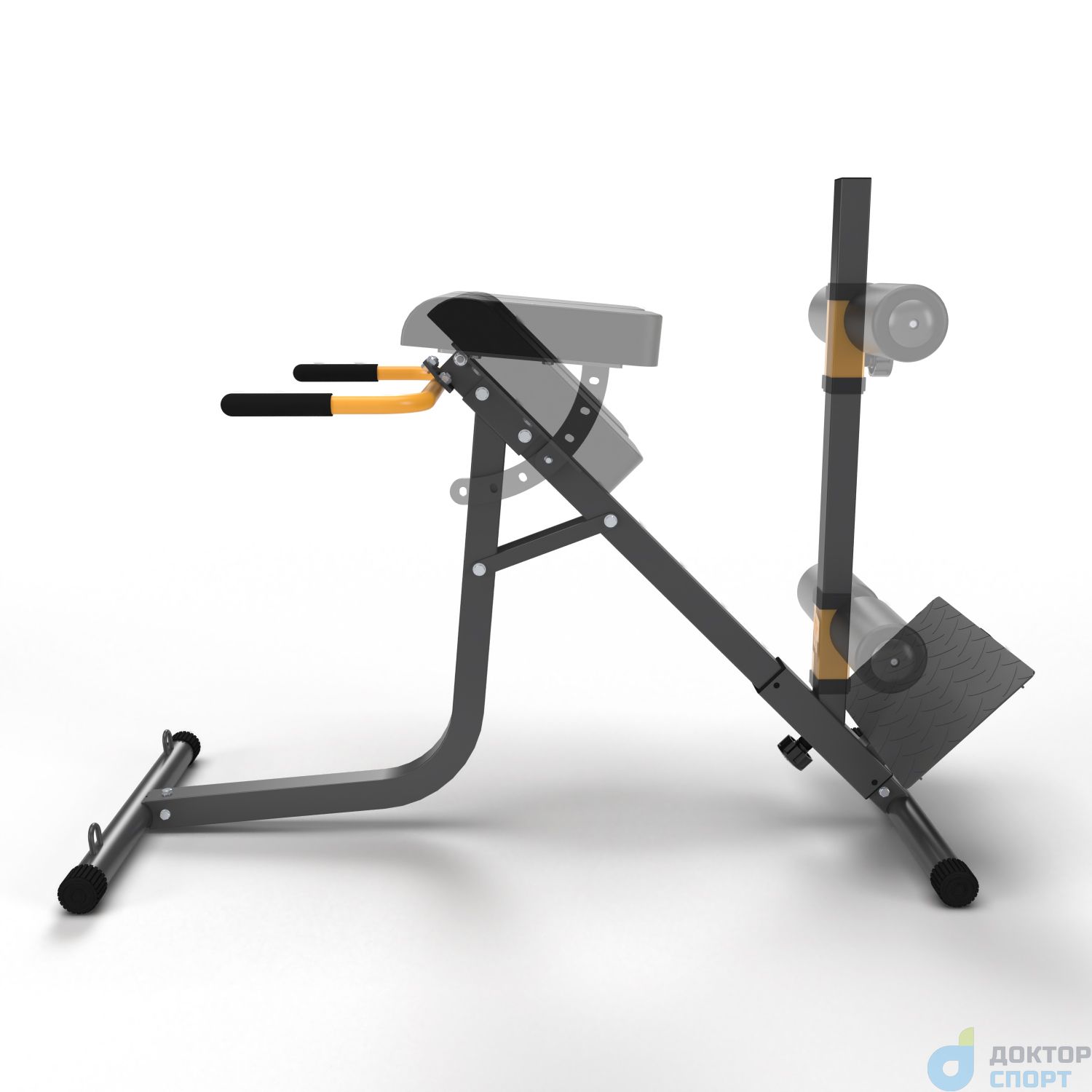 Угол наклона подушек регулируется в 4-х положениях: 4,5°, 18°, 31,5° и 45°. Данное свойство позволяет выполнять несколько техник гиперэкстензий, в том числе обратную и с наклоном. Подушки для упора, размерами 35 х 19 х 7 см выдерживают динамическую нагрузку до 150 кг.