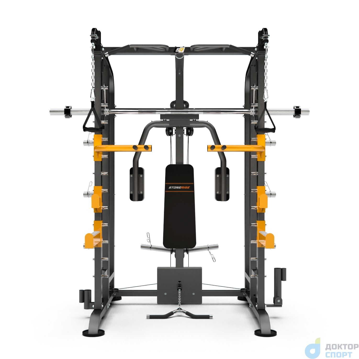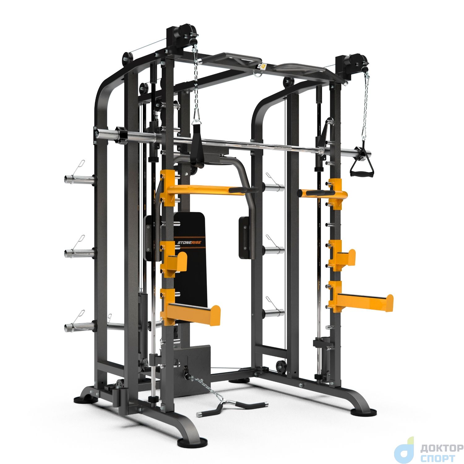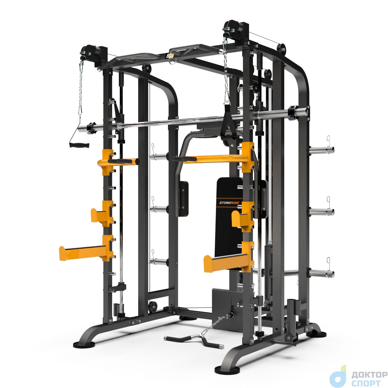 Мультистанция, Машина Смита STONERISE D873. Многочисленные функции тренажёра поспособствуют совокупному развитию мышц всего организма.