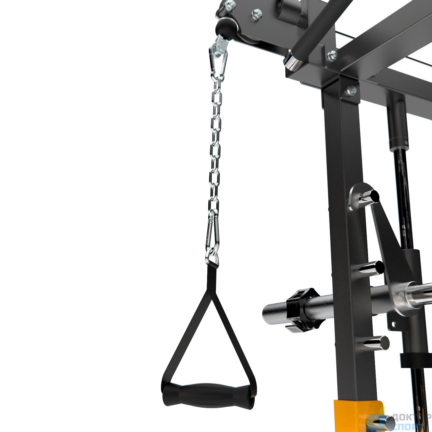 Конструкция D873 устойчивая и долговечная: тросы толщиной 5 мм легко выдерживают постоянное использование, а корпус из профиля 50 х 70 х 2 мм сохранит устойчивость во время самых активных тренировок.