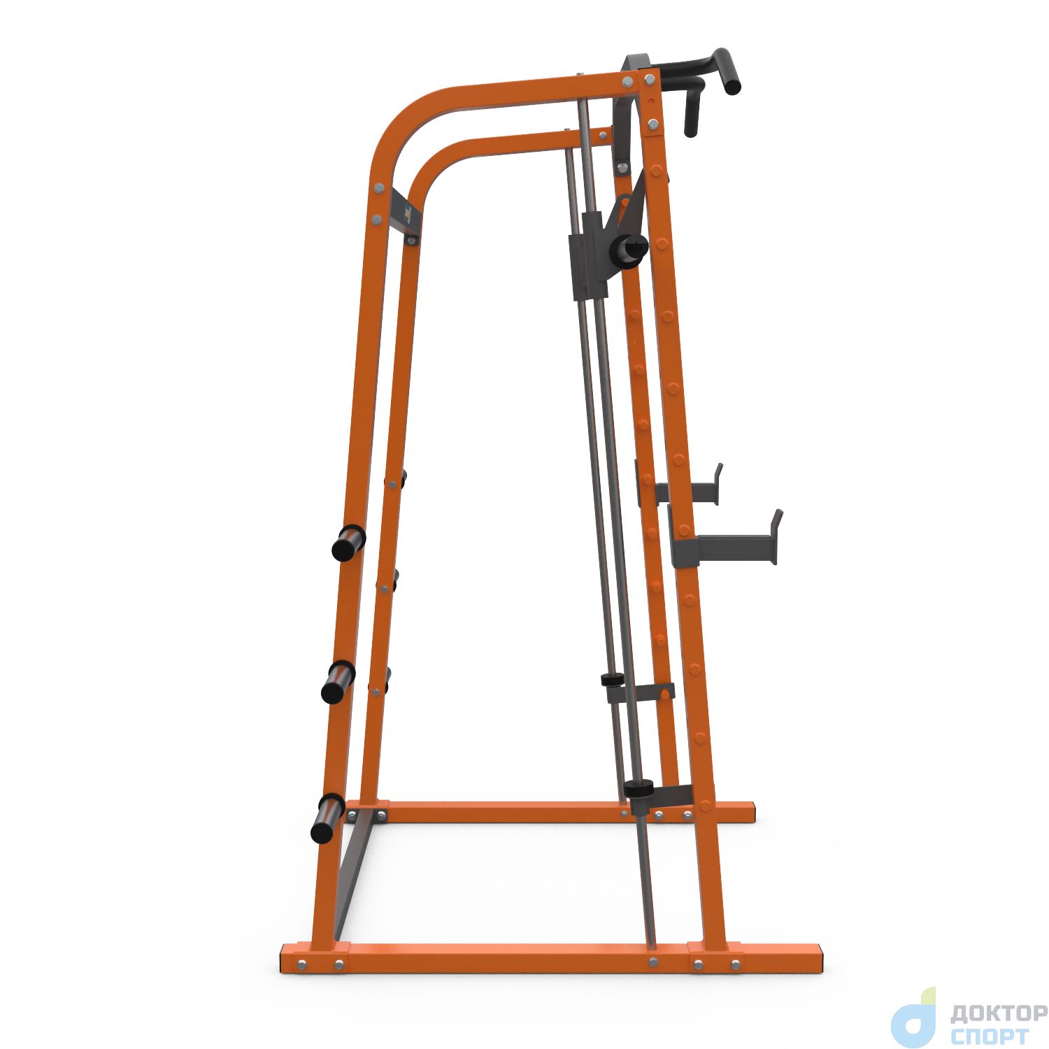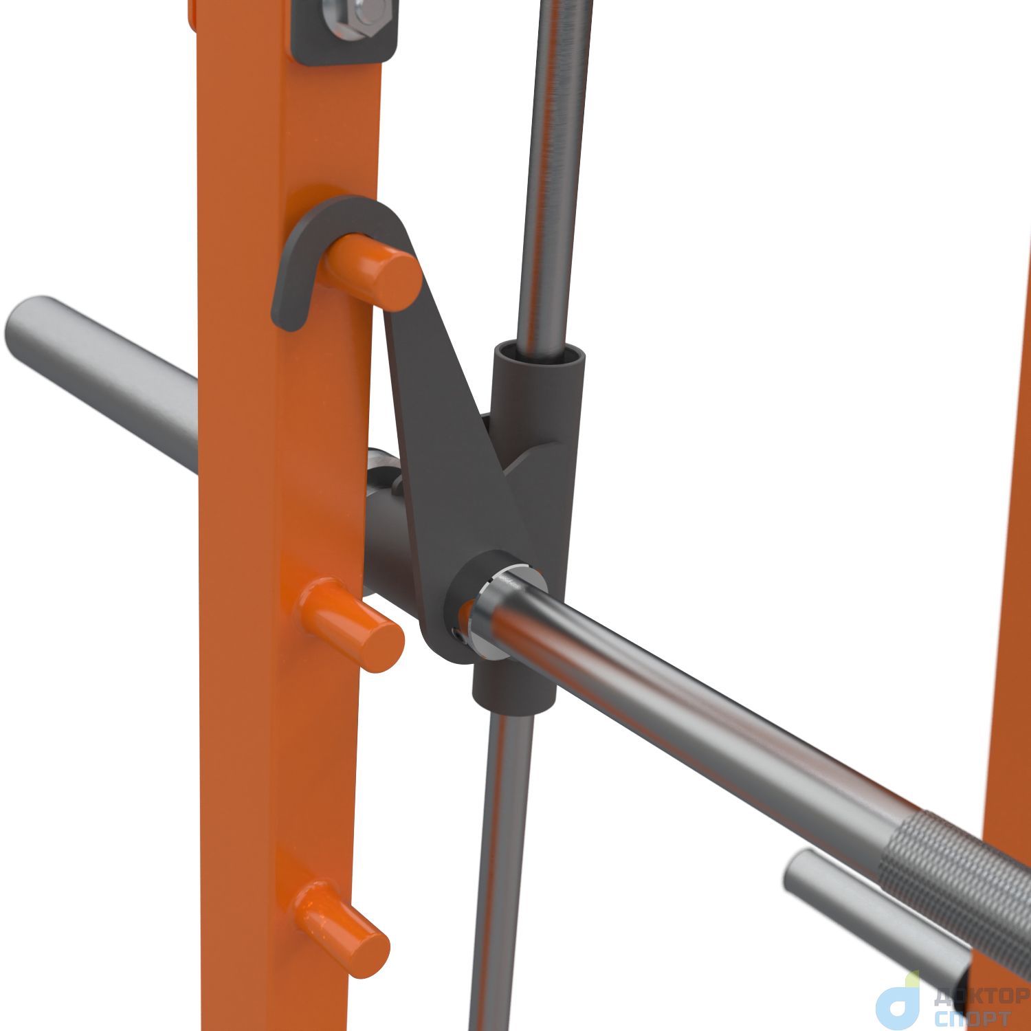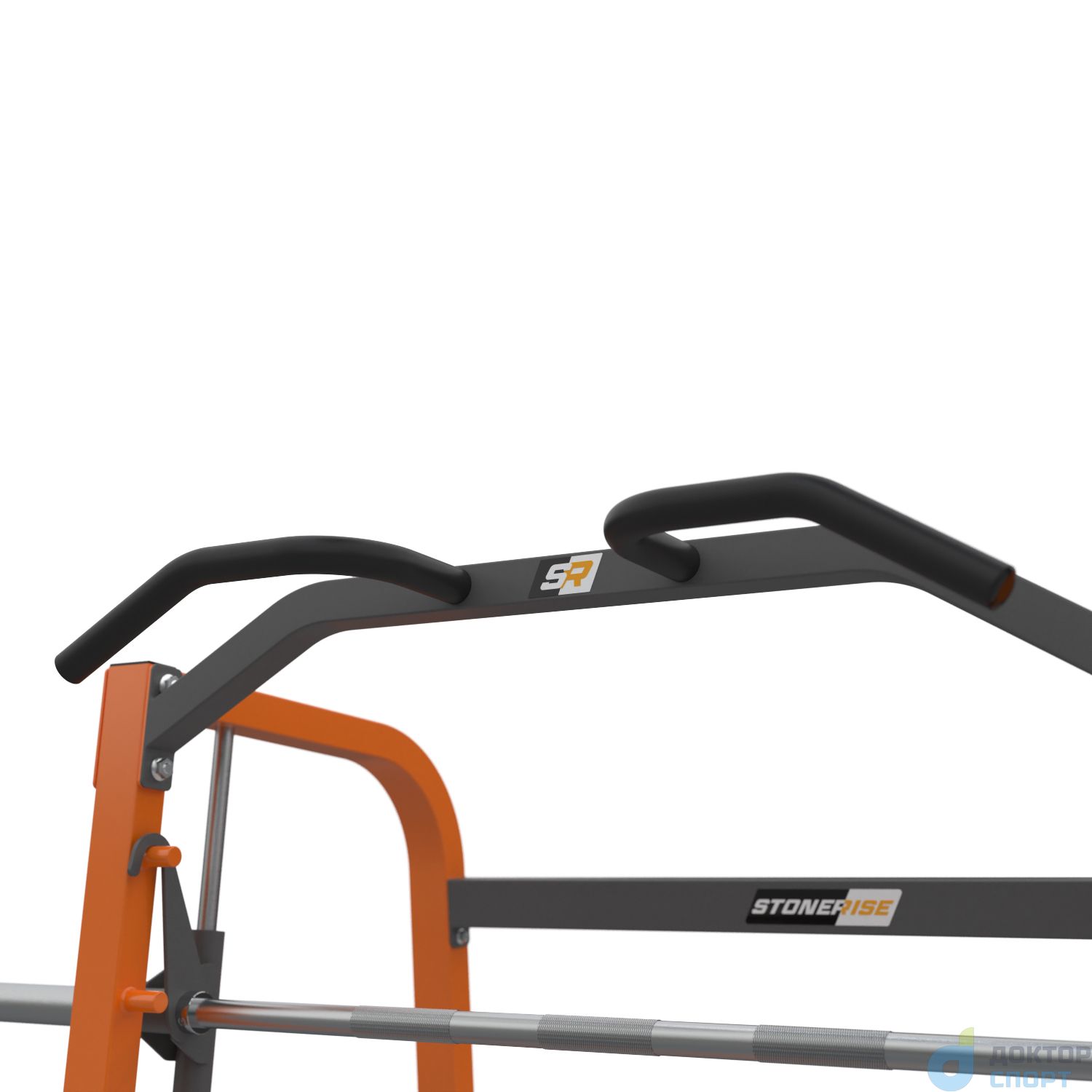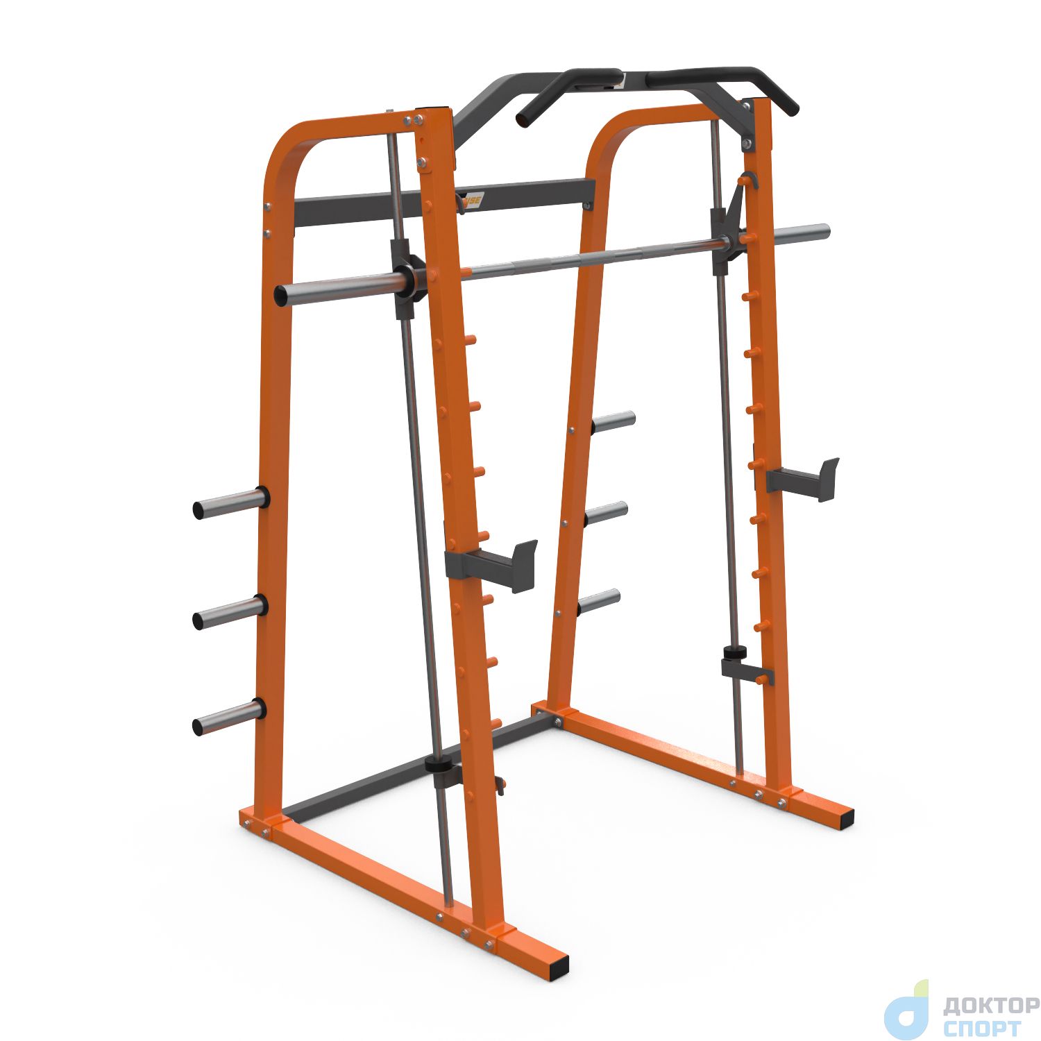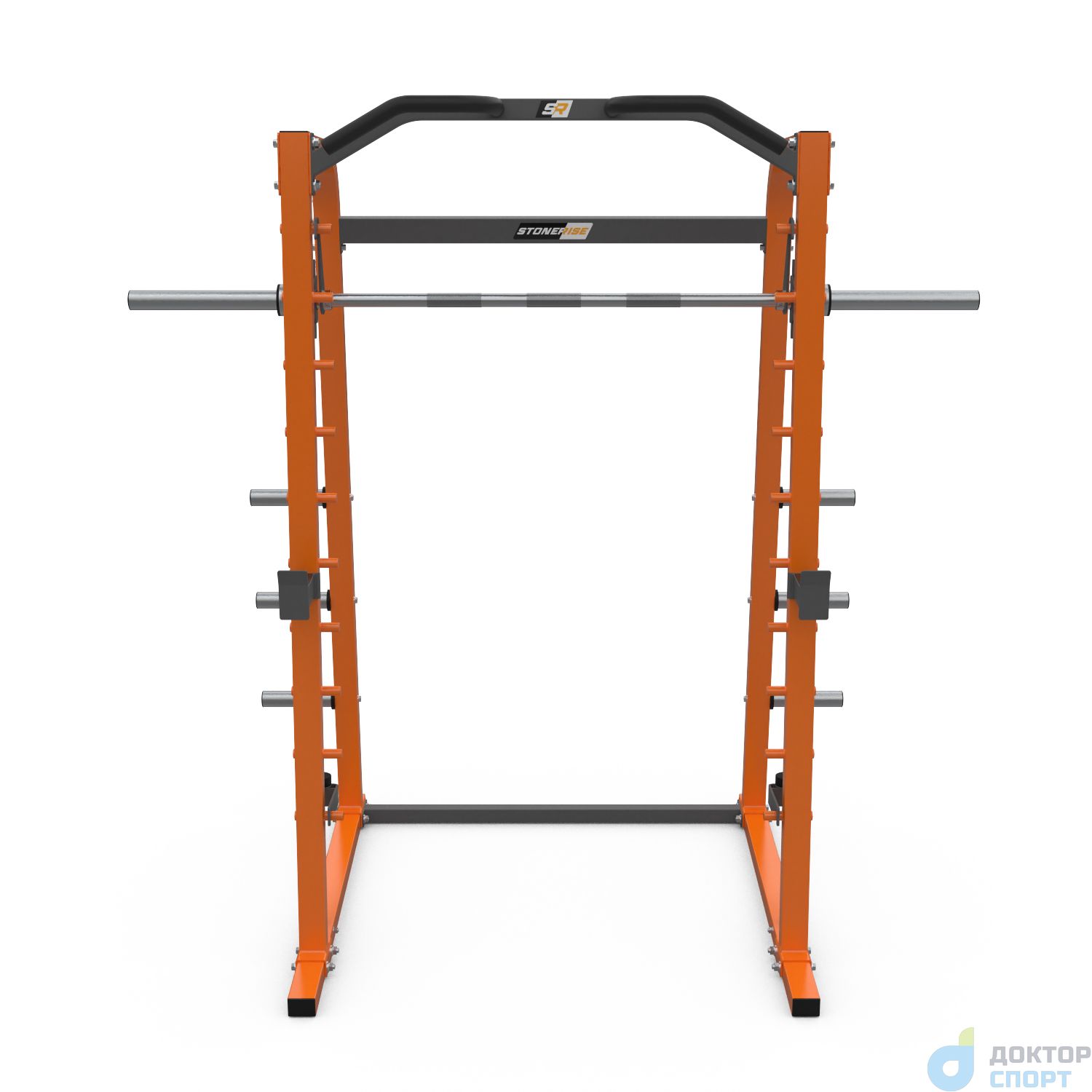 Силовая рама Машина Смита STONERISE D007. Максимальная нагрузка на верхний турник до 150 кг, на гриф - до 200 кг, на ограничители амплитуды движения - до 250 кг. Диаметр дисков для хранения 51 мм, нагрузка на каждый из держателей дисков до 60 кг. Размер основной рамы 70 х 50 х 2 мм, размер соединительных перекладин 50 х 50 х 2 мм. Высота грифа регулируется по высоте в 10-ти положениях. Диаметр ручек турника 32 мм, расстояние между ними 25 см. Длина грифа 220 см, диаметр - 50 мм, замок-пружина на грифе. -