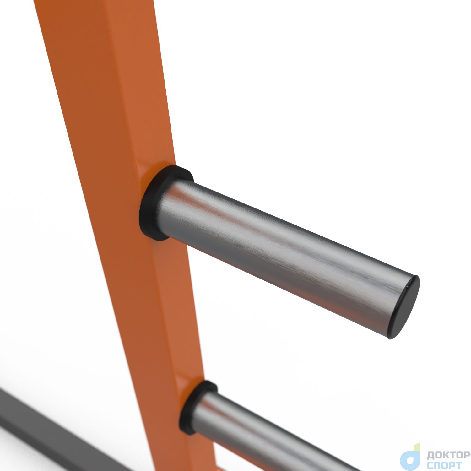 Диаметр дисков для хранения 51 мм, нагрузка на каждый из держателей дисков до 60 кг. Размер основной рамы 70 х 50 х 2 мм, размер соединительных перекладин 50 х 50 х 2 мм. Высота грифа регулируется по высоте в 10-ти положениях.