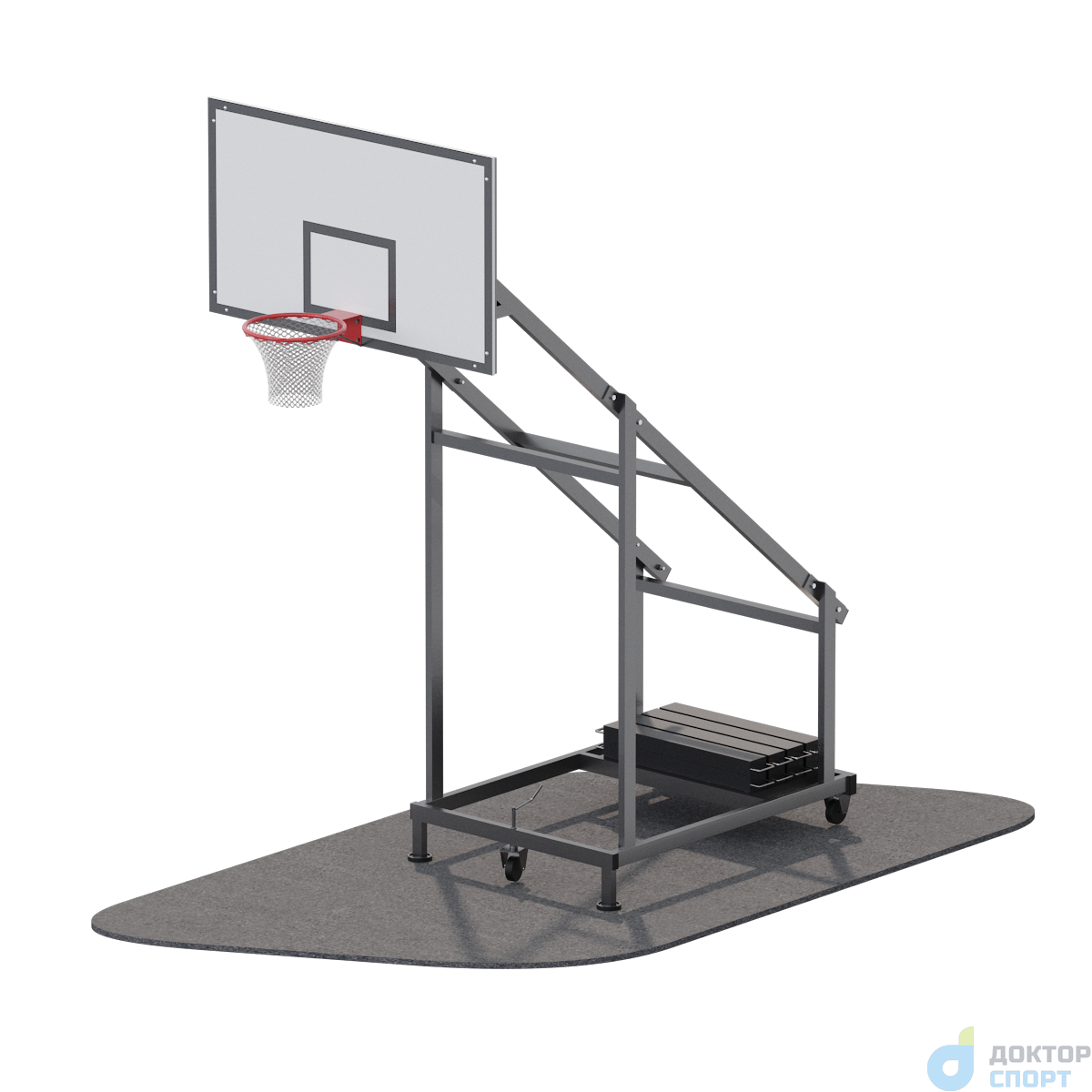 Предназначение: Мобильная баскетбольная стойка предназначена для профессиональной игры в баскетбол, полностью соответствует стандартам. Благодаря сборно-разборной конструкции и колесам, можно легко организовать игровую площадку, а при необходимости откатить в сторону. -