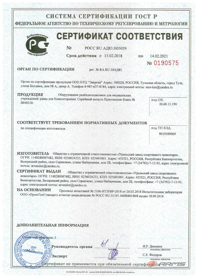 - Соответствие самым высоким стандартам качества гарантирует долговечную бесперебойную работу Вашего зала, укомплектованного тренажерами ARMS.